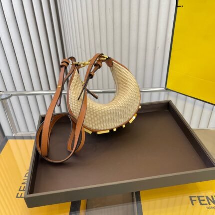 FENDI mini Straw half moon bag Pink Size: 18*9cm