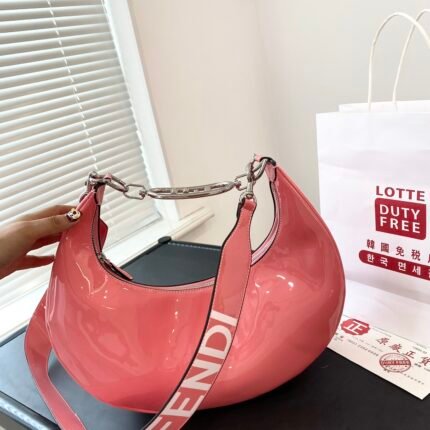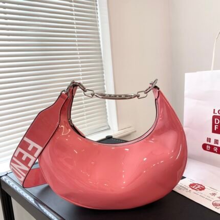FENDI Patent leather half moon bag Pink Size: 34*16cm
