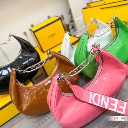 FENDI Patent leather half moon bag Light Pink with chain strap Size: 34*16cm