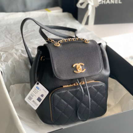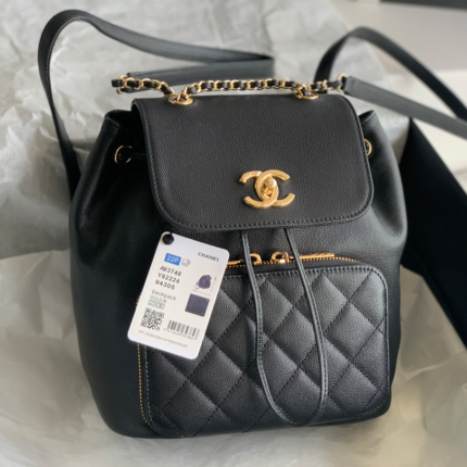 Chanel Classic backpack Black ball pattern series size: 24x21x16cm