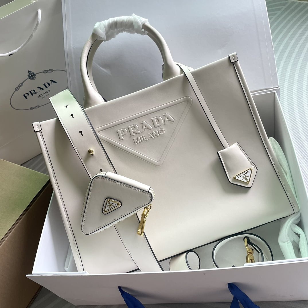 ???????????????????? cowhide Saffiano tote bag with leather strap white 1BA270 size: 33*25*11cm