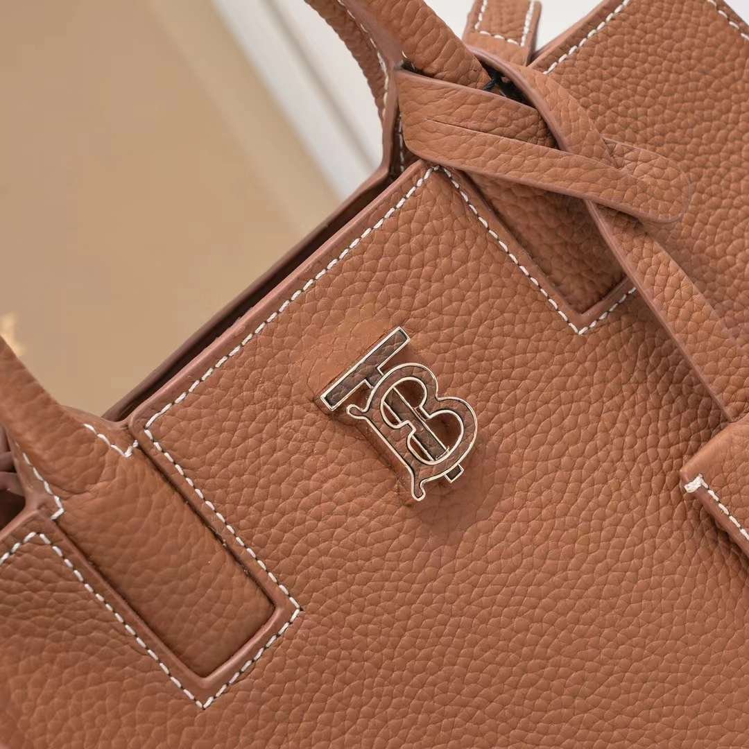 The latest version of B’s upright Tote bag is made of Italian tanned grain leather and eye-catching decorative gloss Thomas Burberry’s exclusive logo. The design is compact, with multiple pockets, and comes with a mirror hanger wrapped in leather. Can be carried in hand or with a detachable shoulder strap.