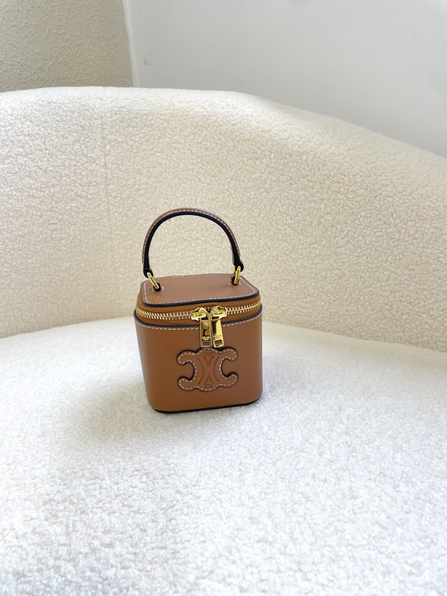 CELINE 23s Spring/Summer – Mini smooth leather makeup case brown 8080 Size: 9.5* 8* 9cm
