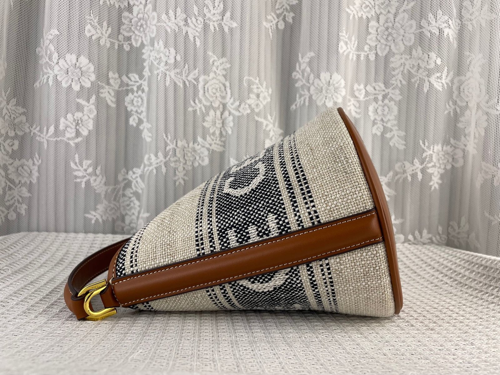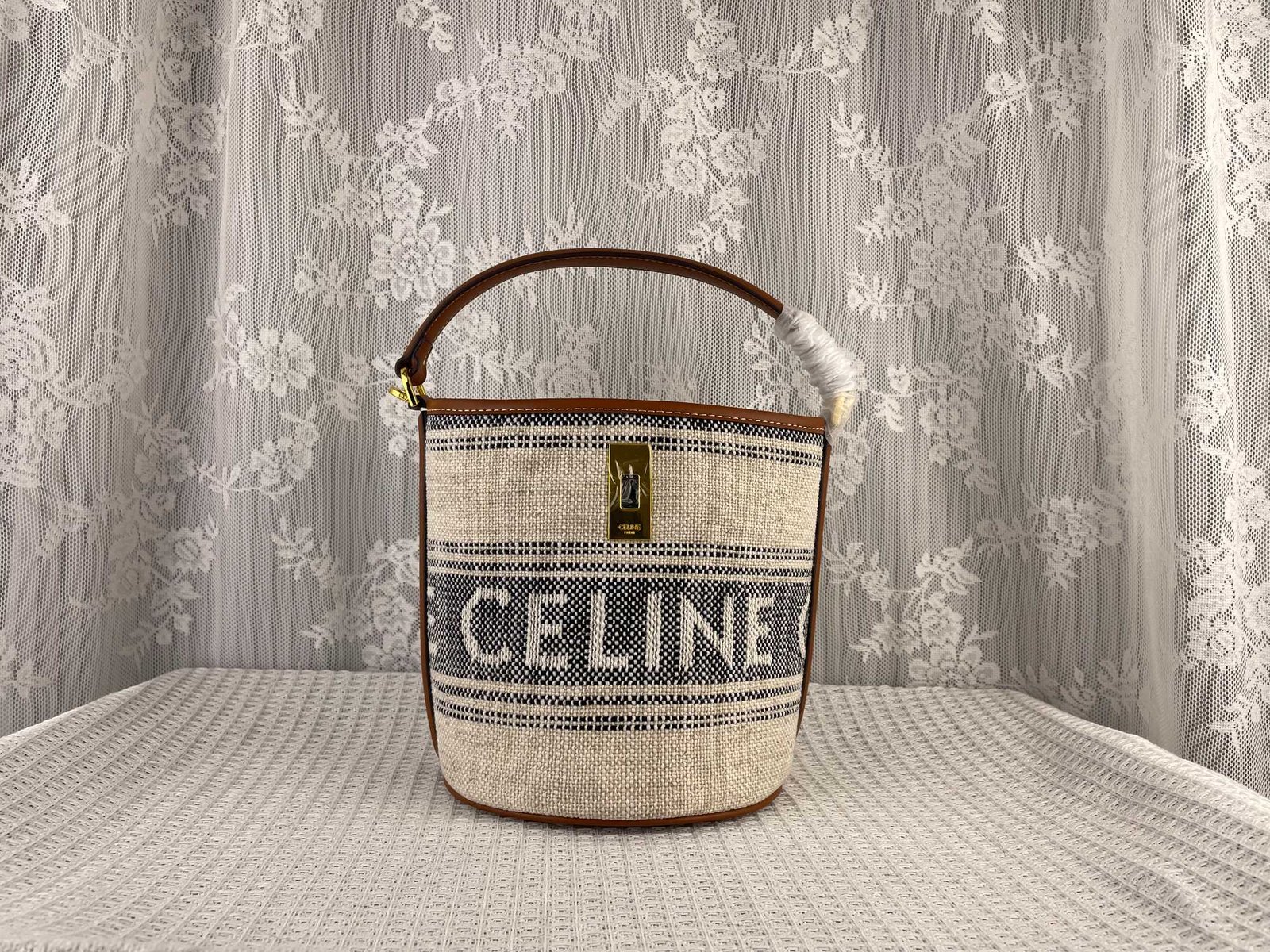 CELINE Fabric cow leather mini bucket bag Size:16*18*16cm