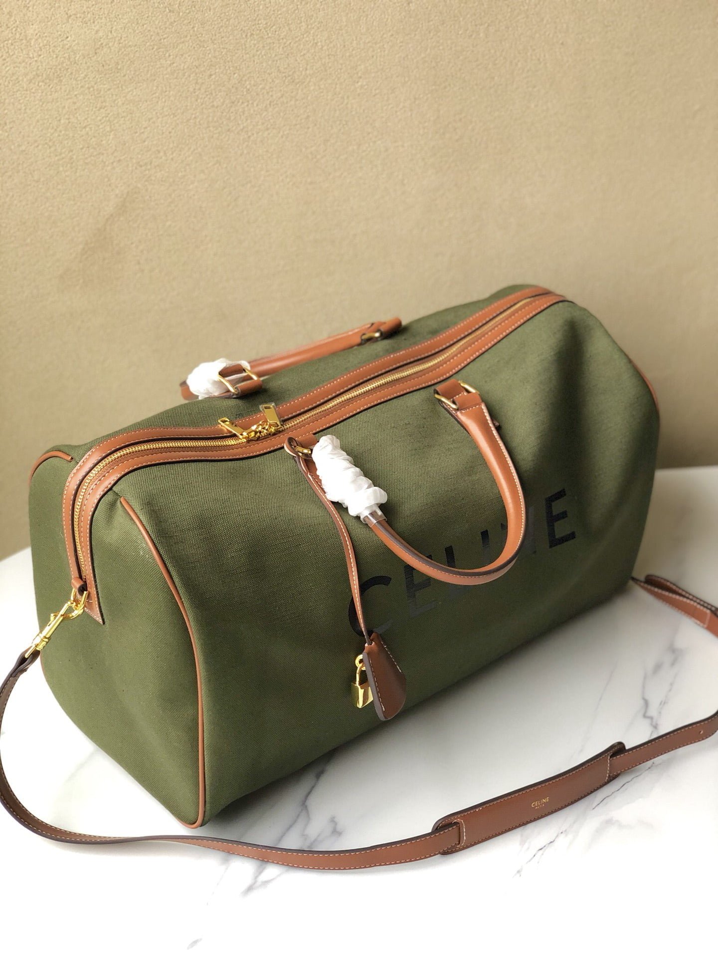 The new CELINE travel bag ???? Model No. 8029, canvas green, VOYAGE TRIOMPHE Canvas large 20 X 11 X 9 inches (50 X 28 X 22.5 cm)