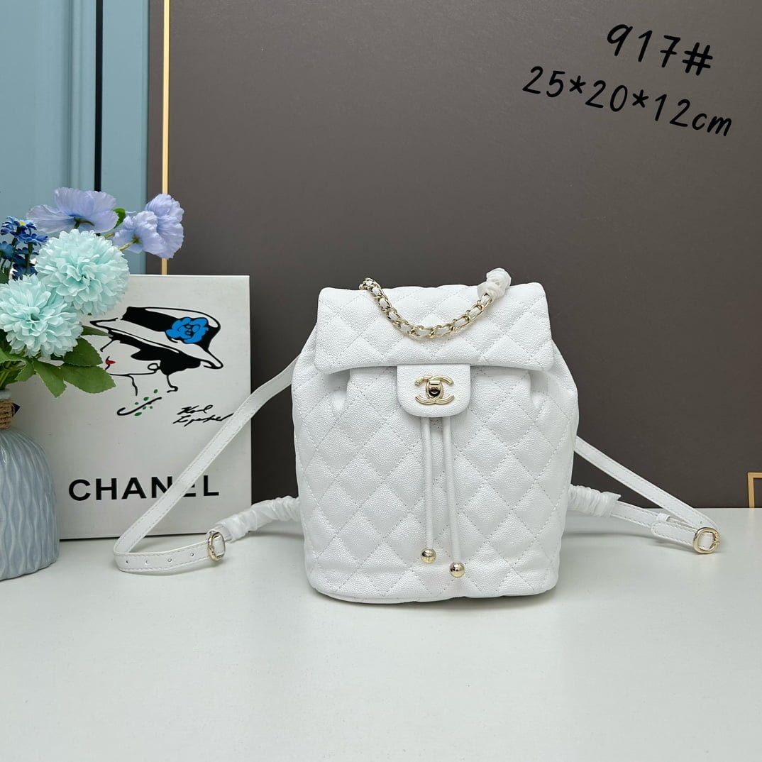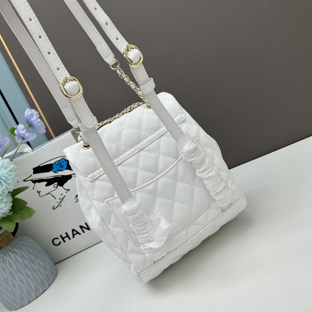 Chanel 23s Salzburg cowhide backpack 917 White size: 25*20*12cm/23*18*10cm