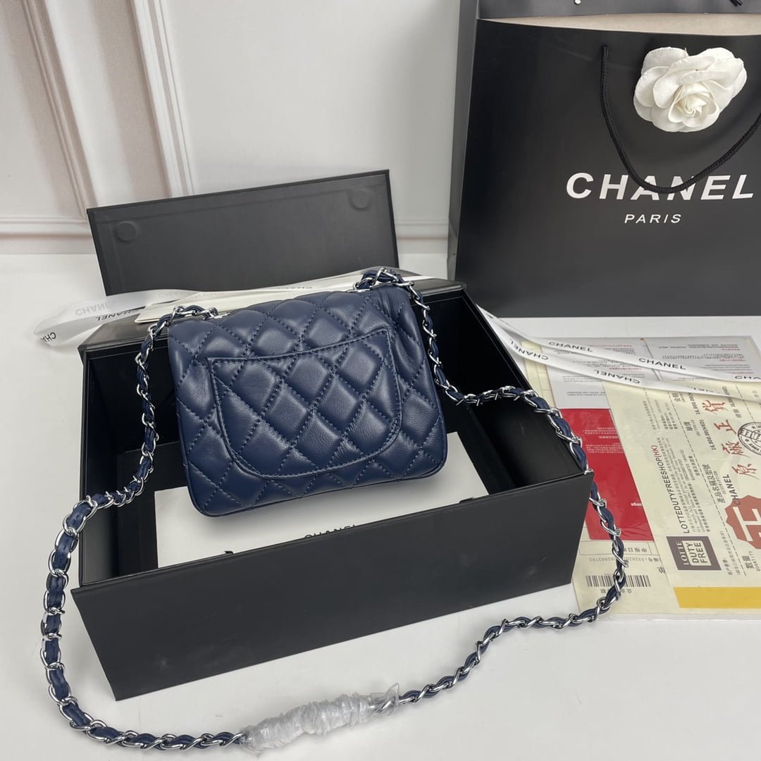 Chanel cf Square Fat 1115 sheepskin leather blue size: 18*14*7cm