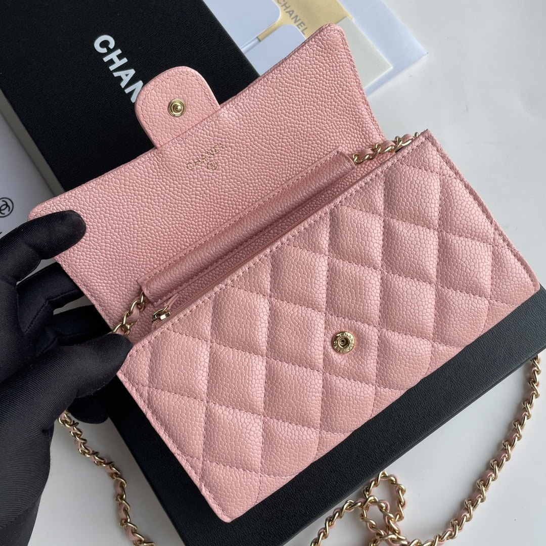 Chanel chain crossbody bag Cowhide with diamond lattice caviar Pink A50076 size: 18*10.5*3.5cm
