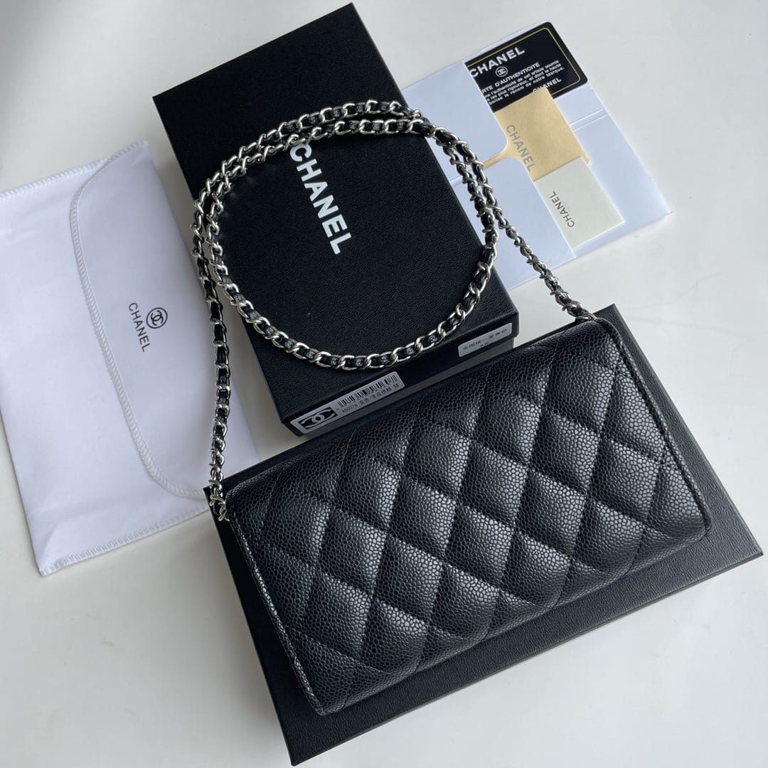 Chanel chain crossbody bag Cowhide with diamond lattice caviar Sliver hardware Black A50076 size: 18*10.5*3.5cm