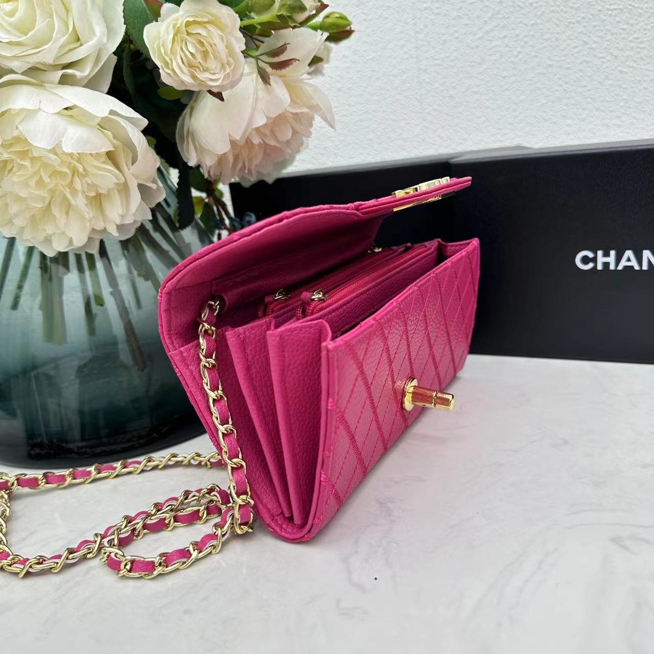 Chanel chain crossbody bag diamond and litchi cowhide Rose red 50098 size: 19*10*3.5㎝