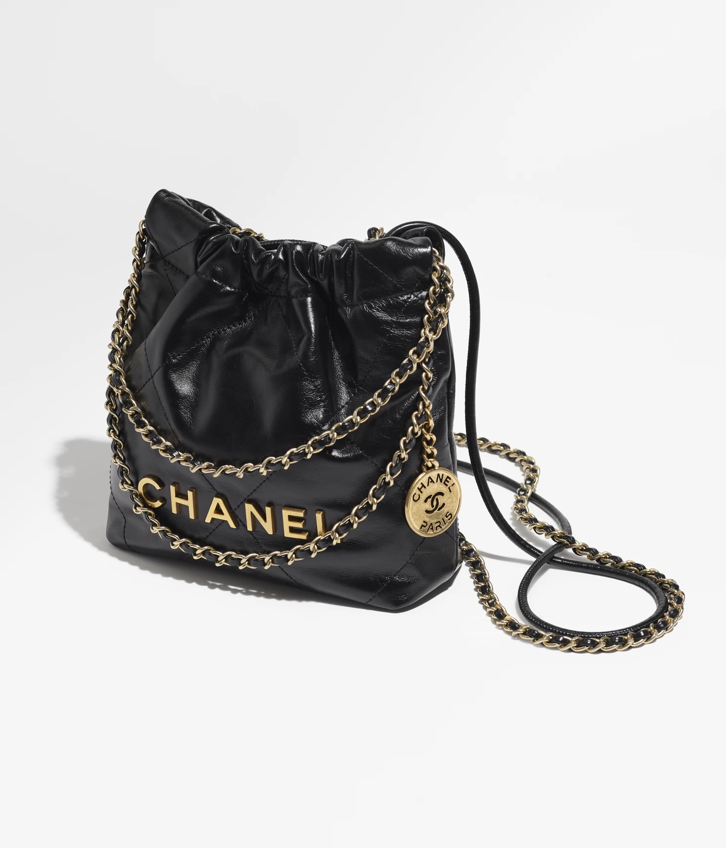 CHANEL / CHANEL 22 MINI HANDBAG Shiny Calfskin & Gold-Tone Metal Black Ref. AS3980 B08037 94305