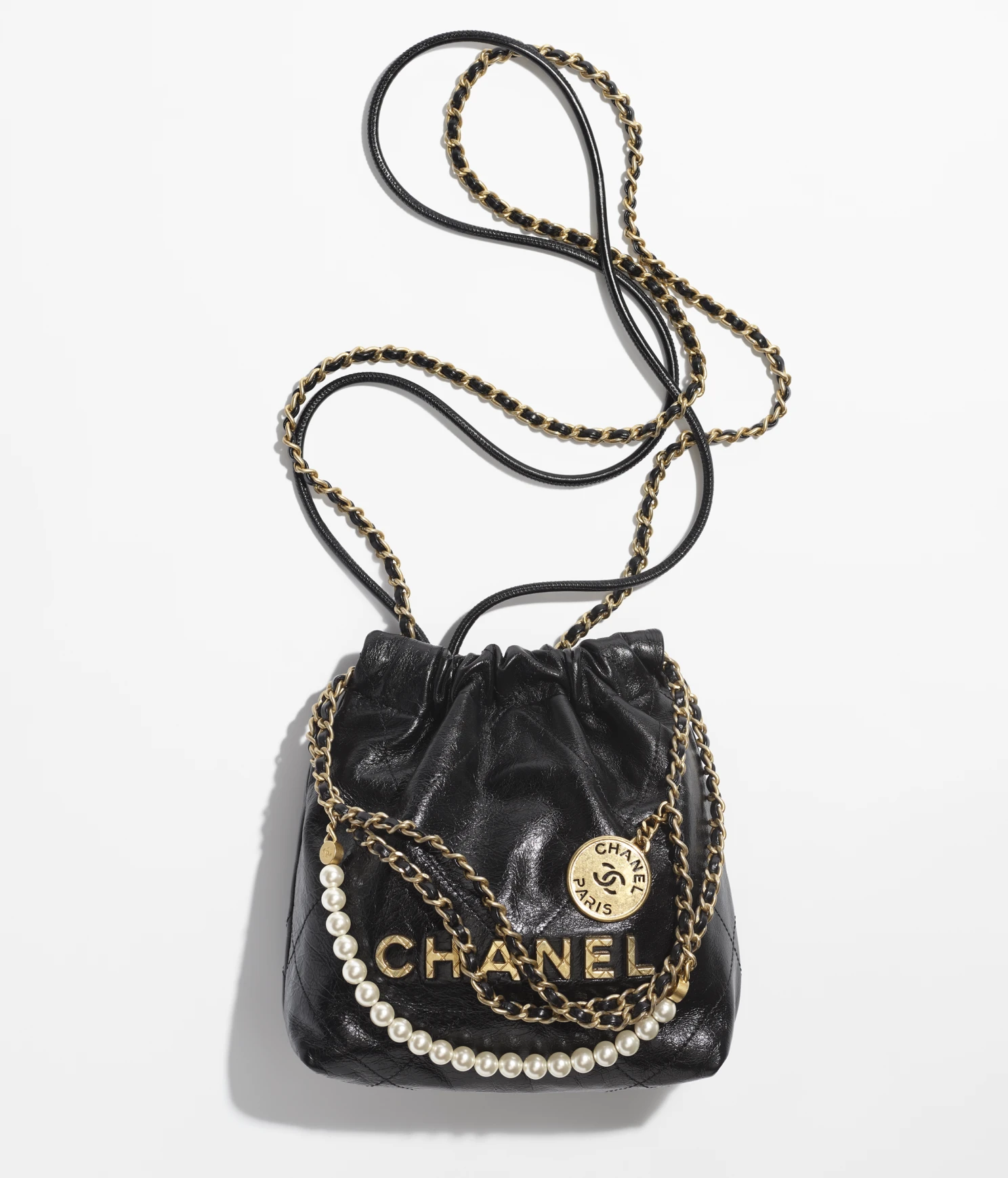 CHANEL / CHANEL 22 MINI HANDBAG Shiny Crumpled Calfskin & Gold-Tone Metal Black Ref. AS3980 B10672 94305