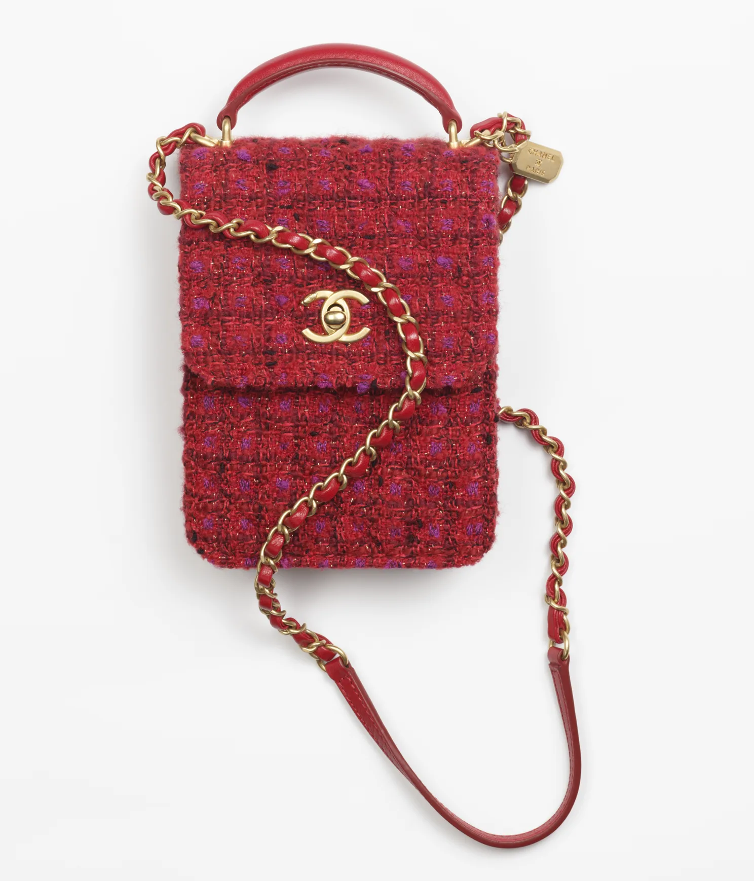 CHANEL / MINI FLAP BAG WITH TOP HANDLE Wool Tweed, Lambski & Gold-Tone Metal Red, Purple & Black Ref. AS4285 B13746 N7491