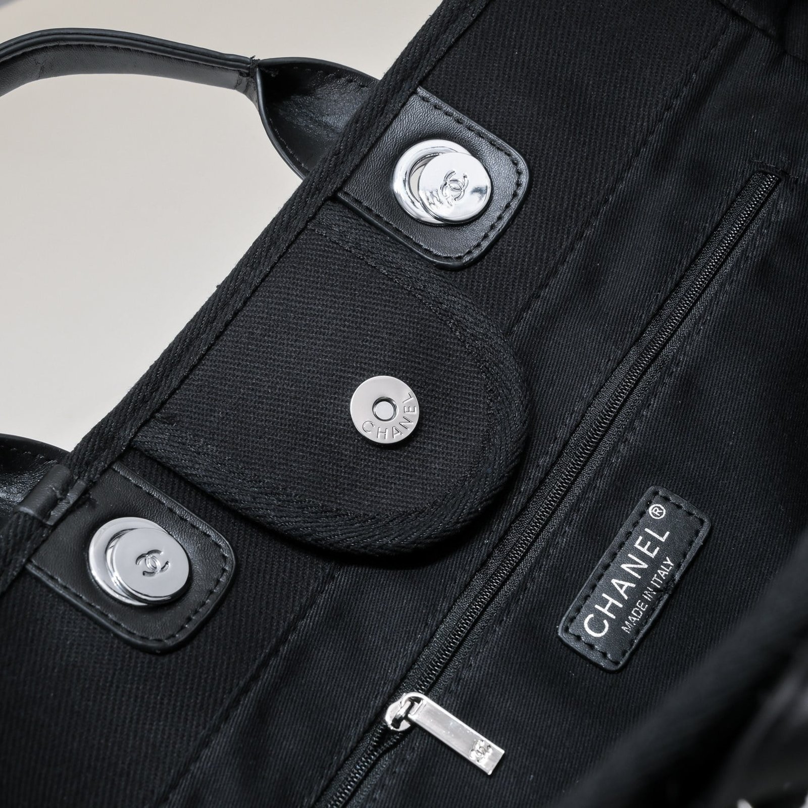 Chanel new beach bag denim bag Black with little wallet size: 48*38*30*14cm