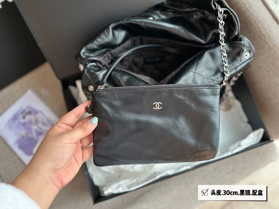 30*32cm (small) Black silver natural color chanel 22bag is cooler! Oil wax leather is very resistant to making high-grade feeling full garbage bag