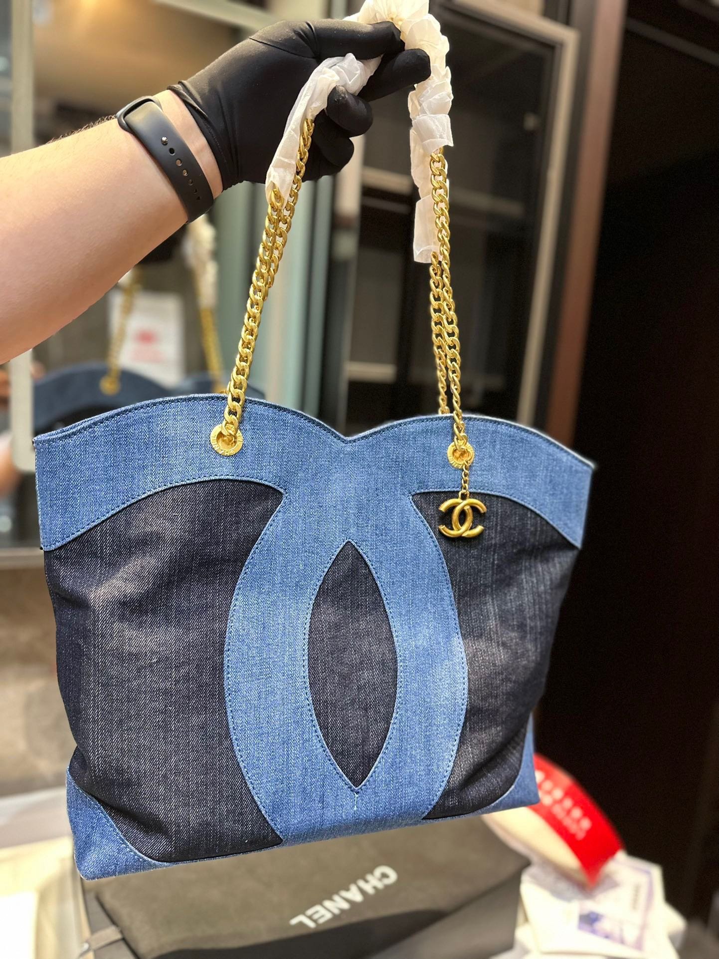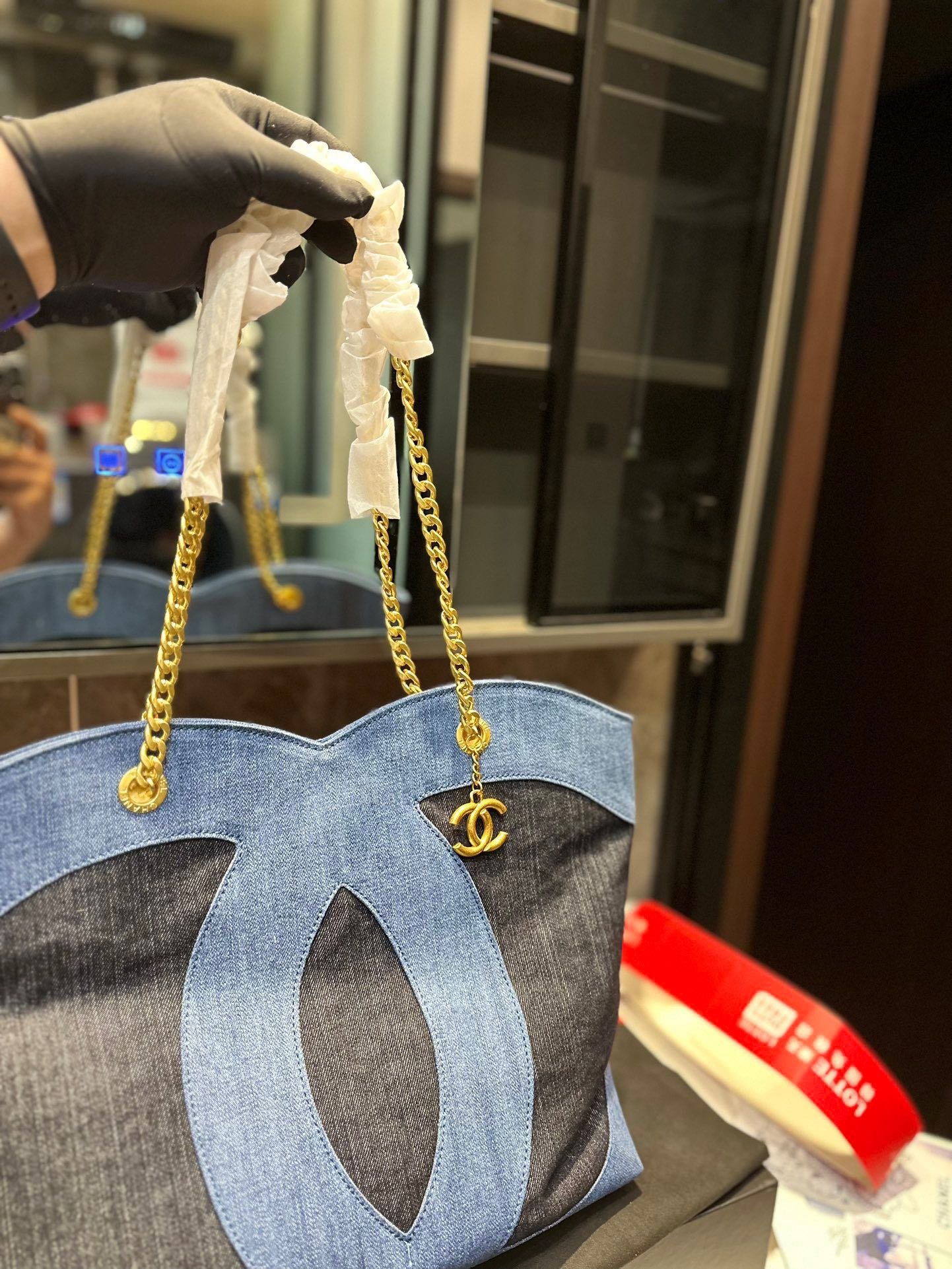 Classic explosive denim shopping bag 】 Chanel Chanel imported ramie cotton denim shopping bag beach bag any details of the version of fabric, the version of embroidery LOGO color back to the many stars love interpretation, the street shot exploded ???????? super hot ???????? shopping holiday trip essential ❕ real white rich Mei special bag ❤️❤️ summer essential ???? Chanel canvas bag, Not general market goods! ???????? summer beach afternoon tea is refreshing!! ???? It’s beautiful! [Naughty]size: 33x 32