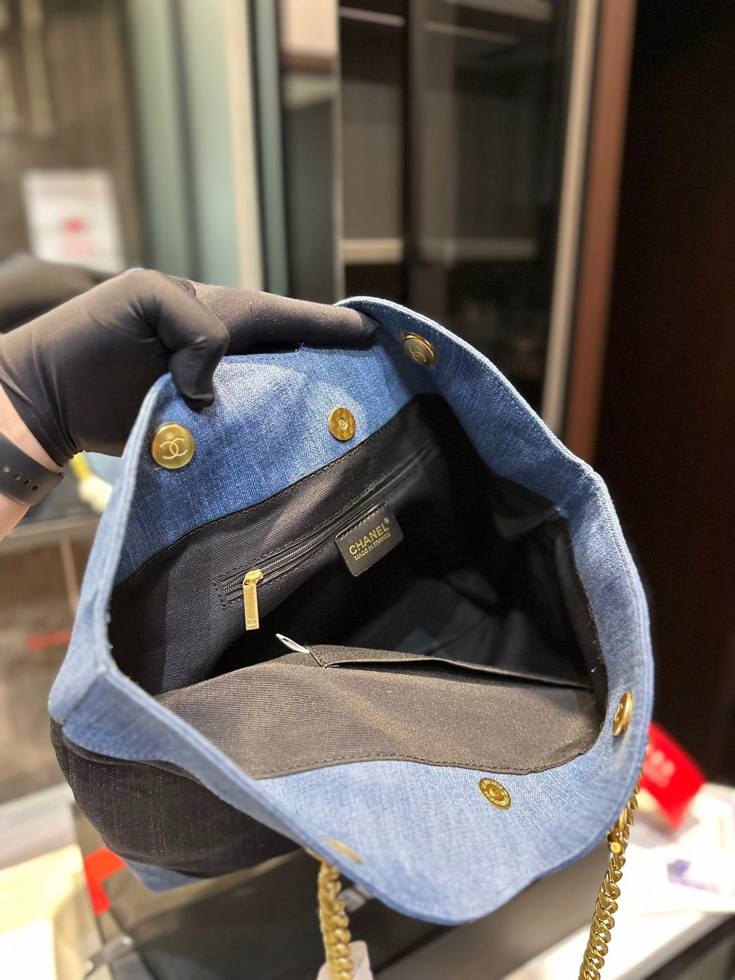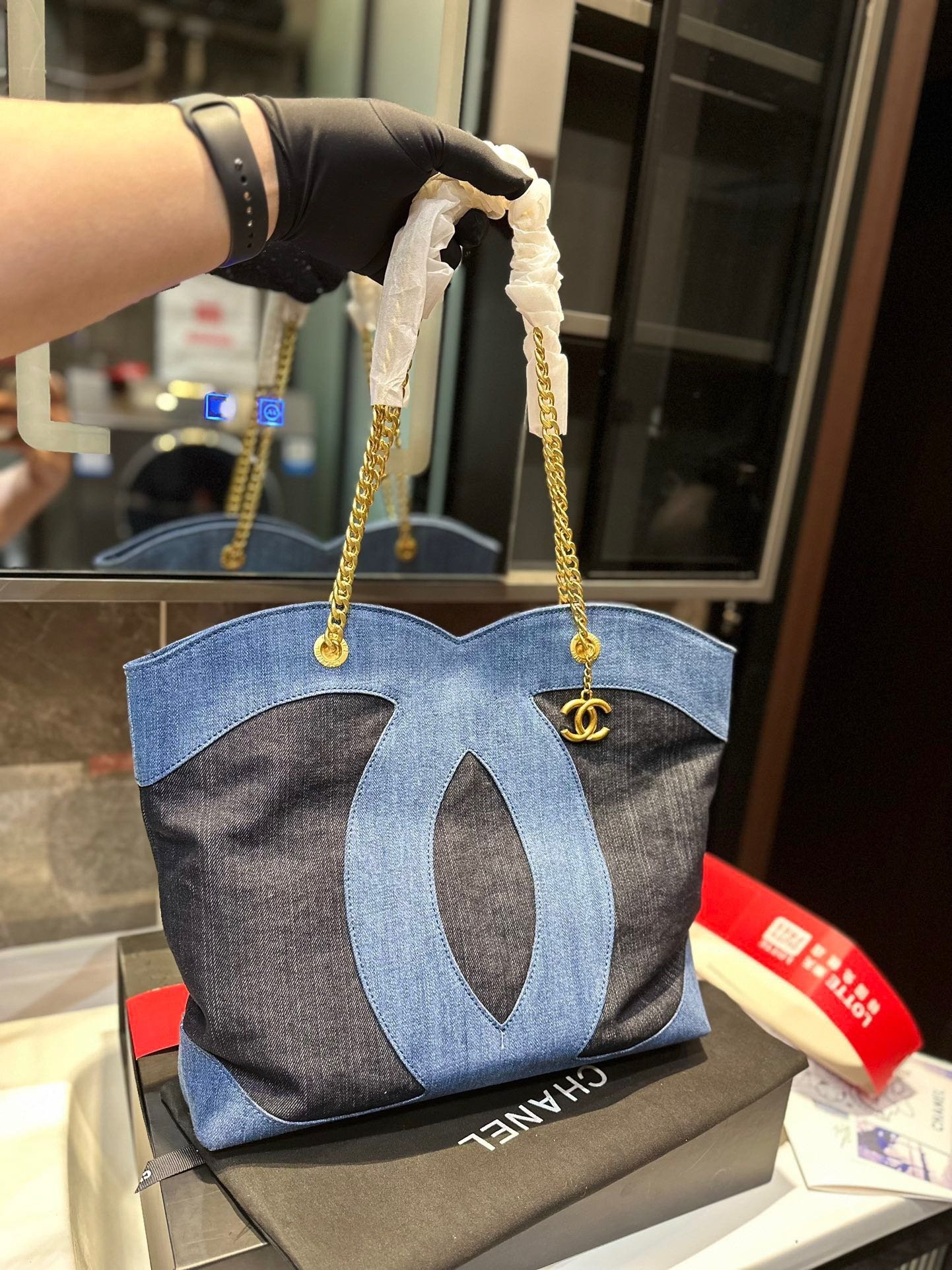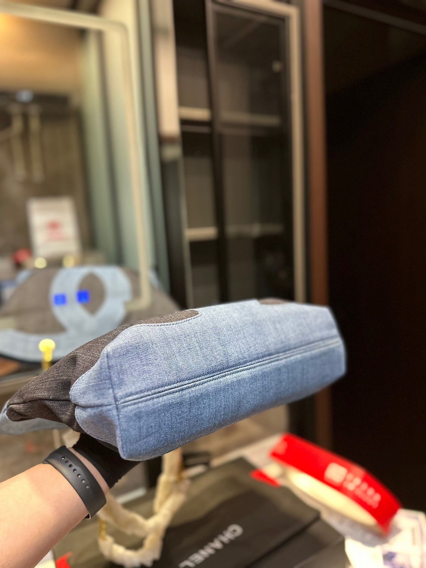 Chanel ramie cotton denim shopping bag beach bag size: 33* 32cm
