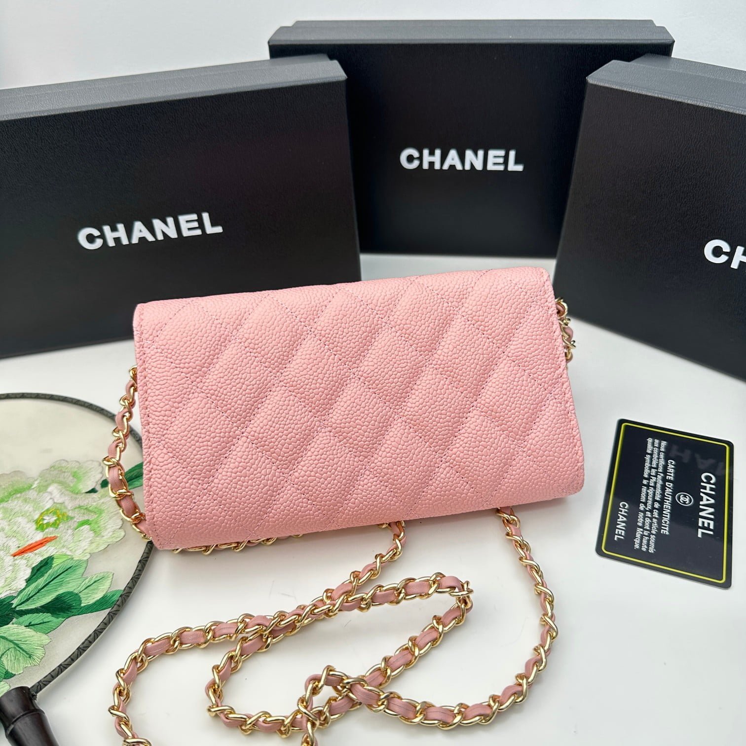 Chanel Rhombus caviar cowhide chain crossbody bag pink 8001 size: 18*10.5*3.5 cm
