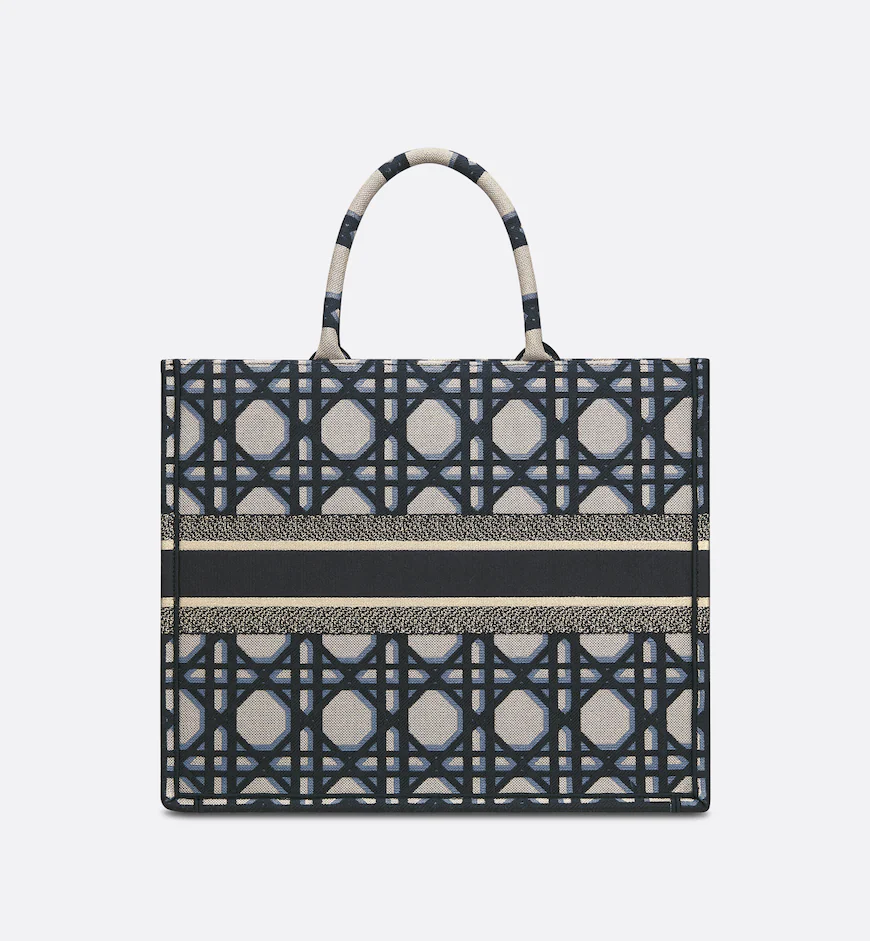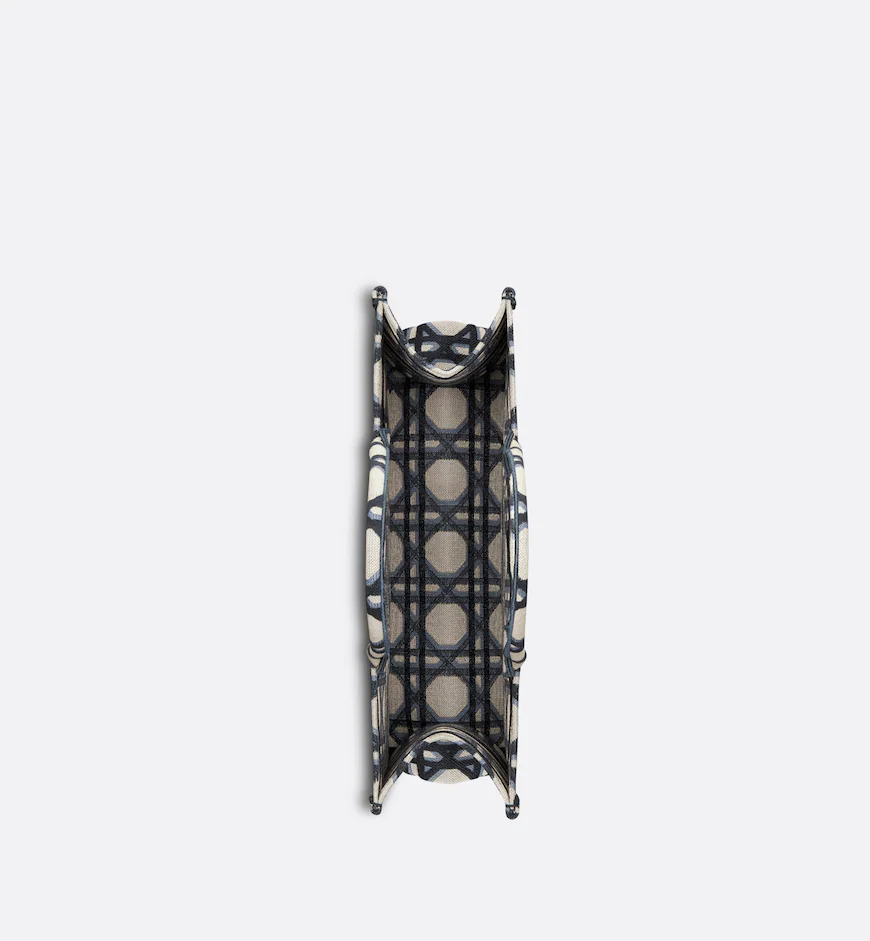 DIOR / LARGE DIOR BOOK TOTE Beige and Blue Macrocannage Embroidery (42 x 35 x 18.5 cm)