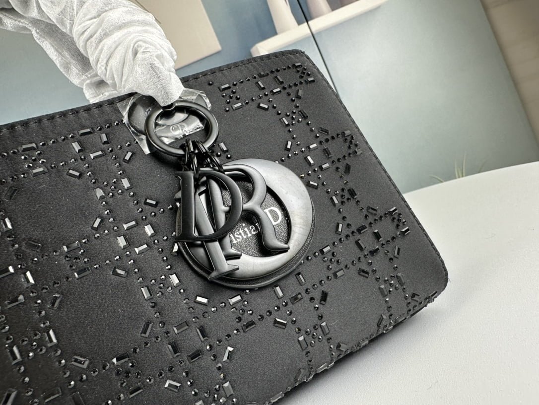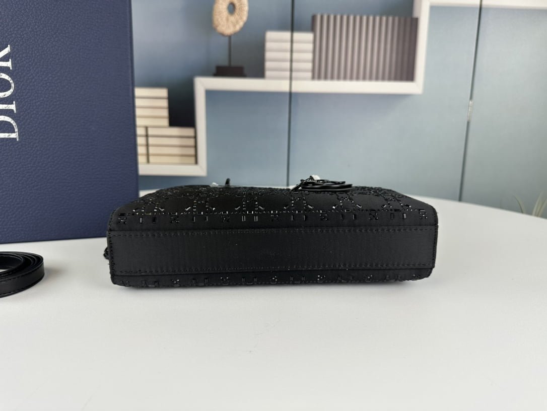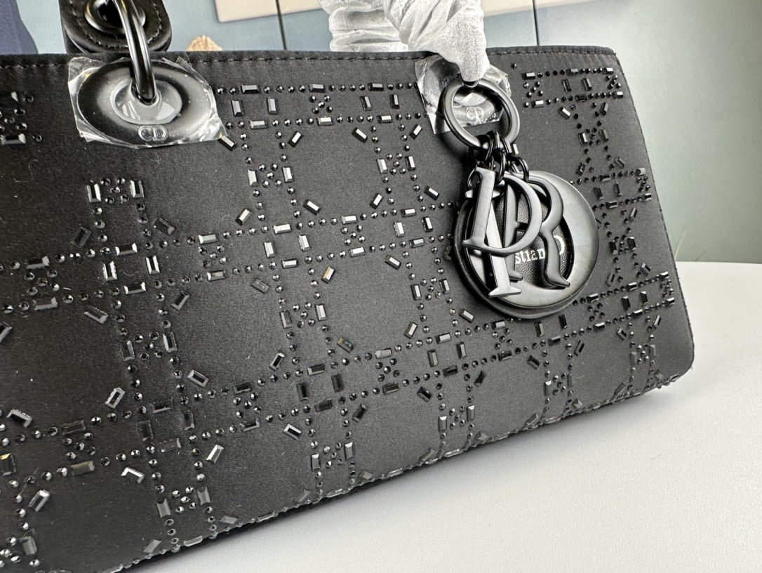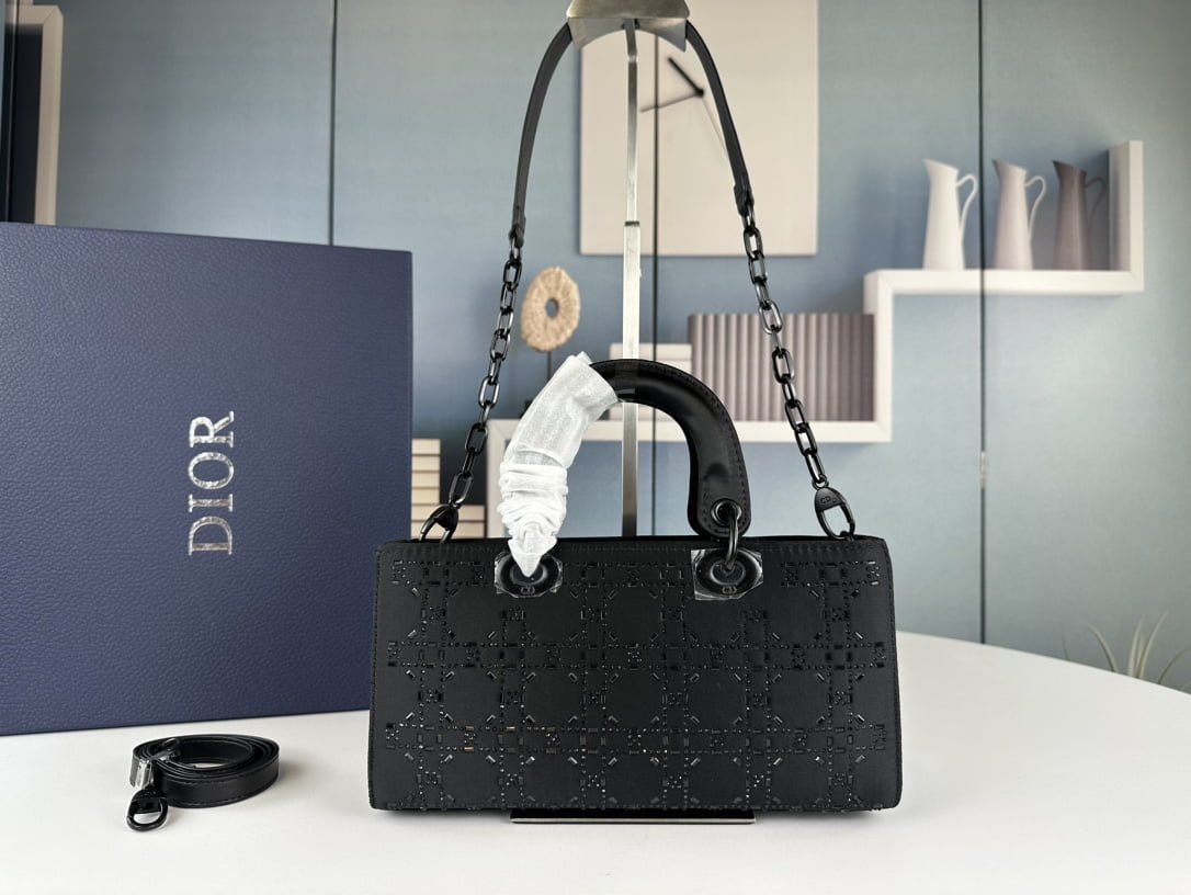 Dior satin diamond-encrusted Princess Diana bag black 2320 size: 26*13*6cm