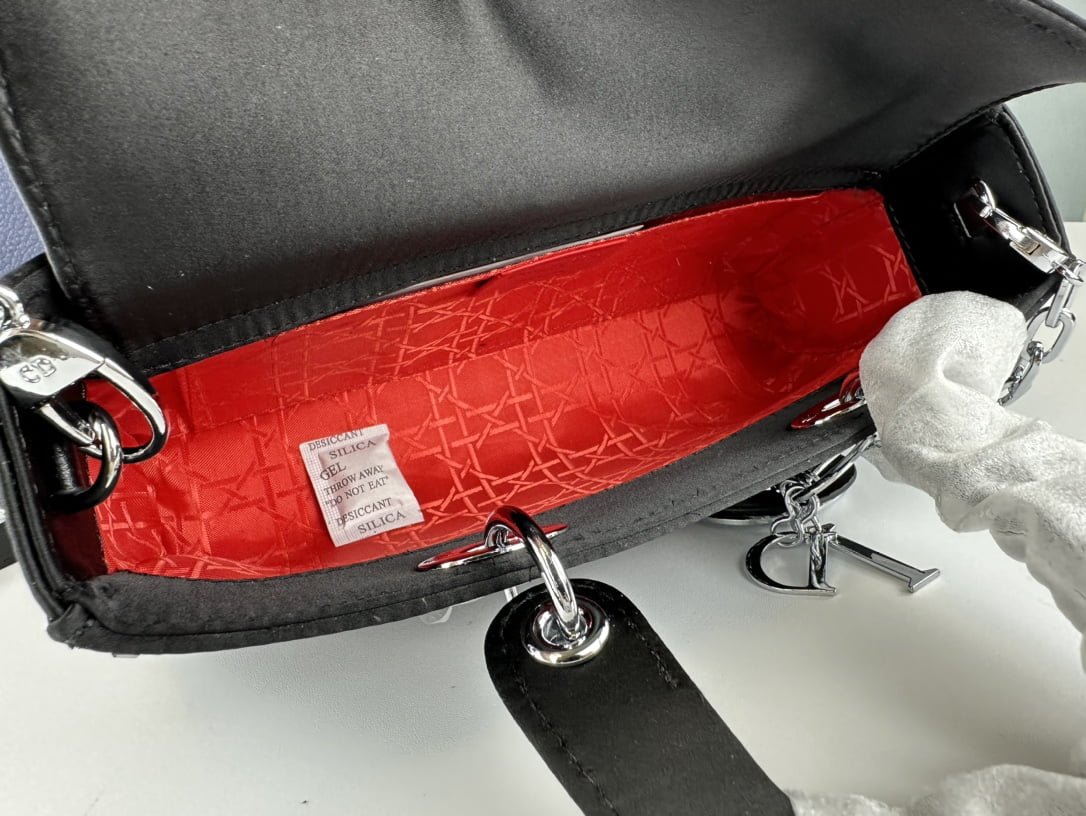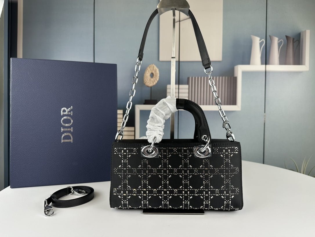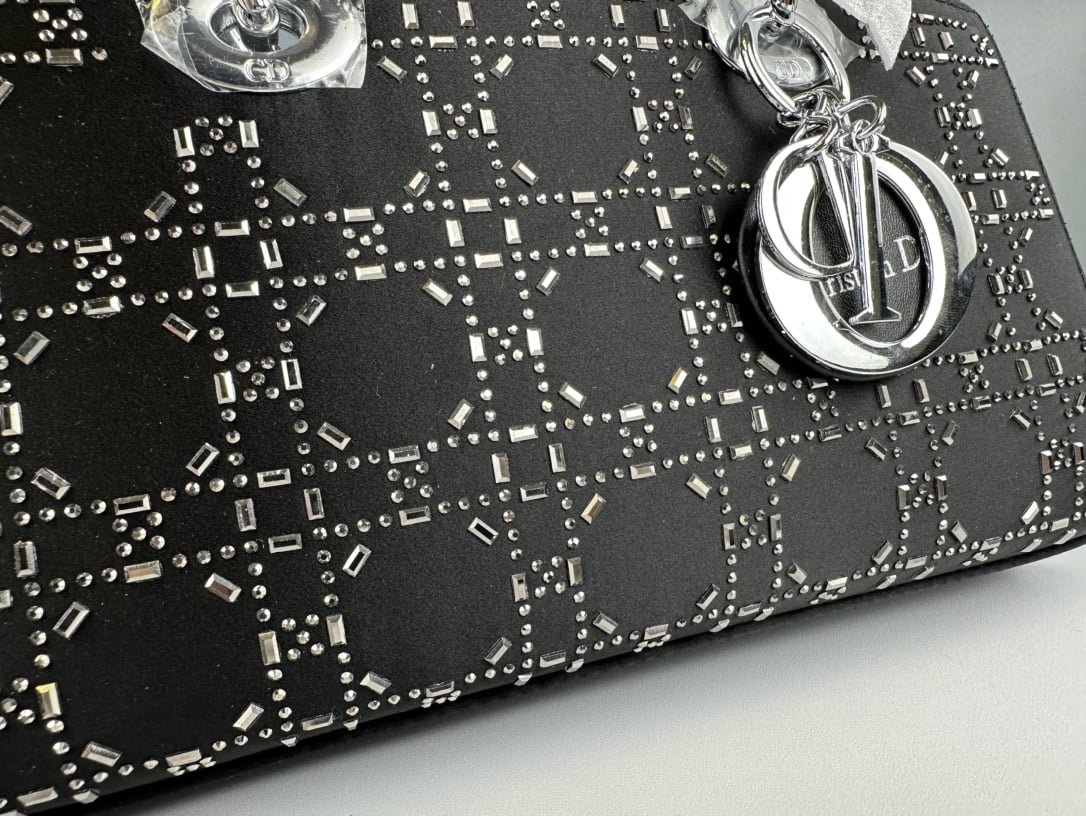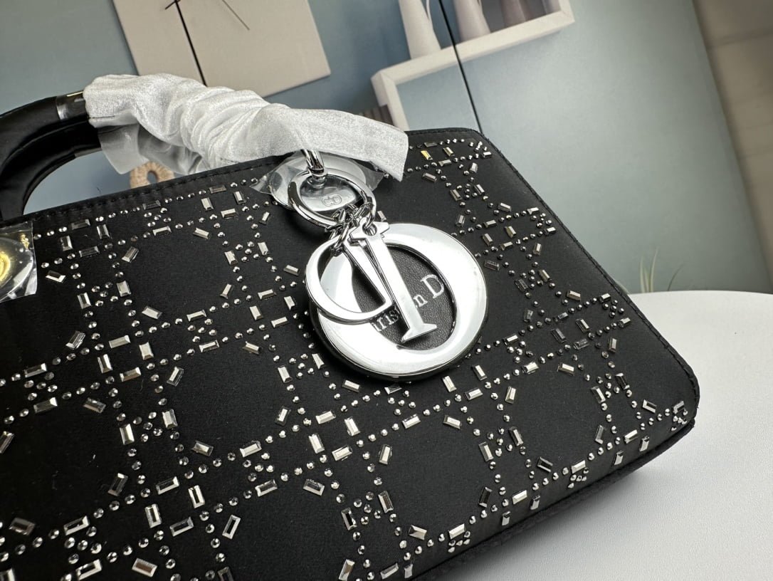 Dior satin diamond-encrusted Princess Diana bag black 2320 size: 26*13*6cm