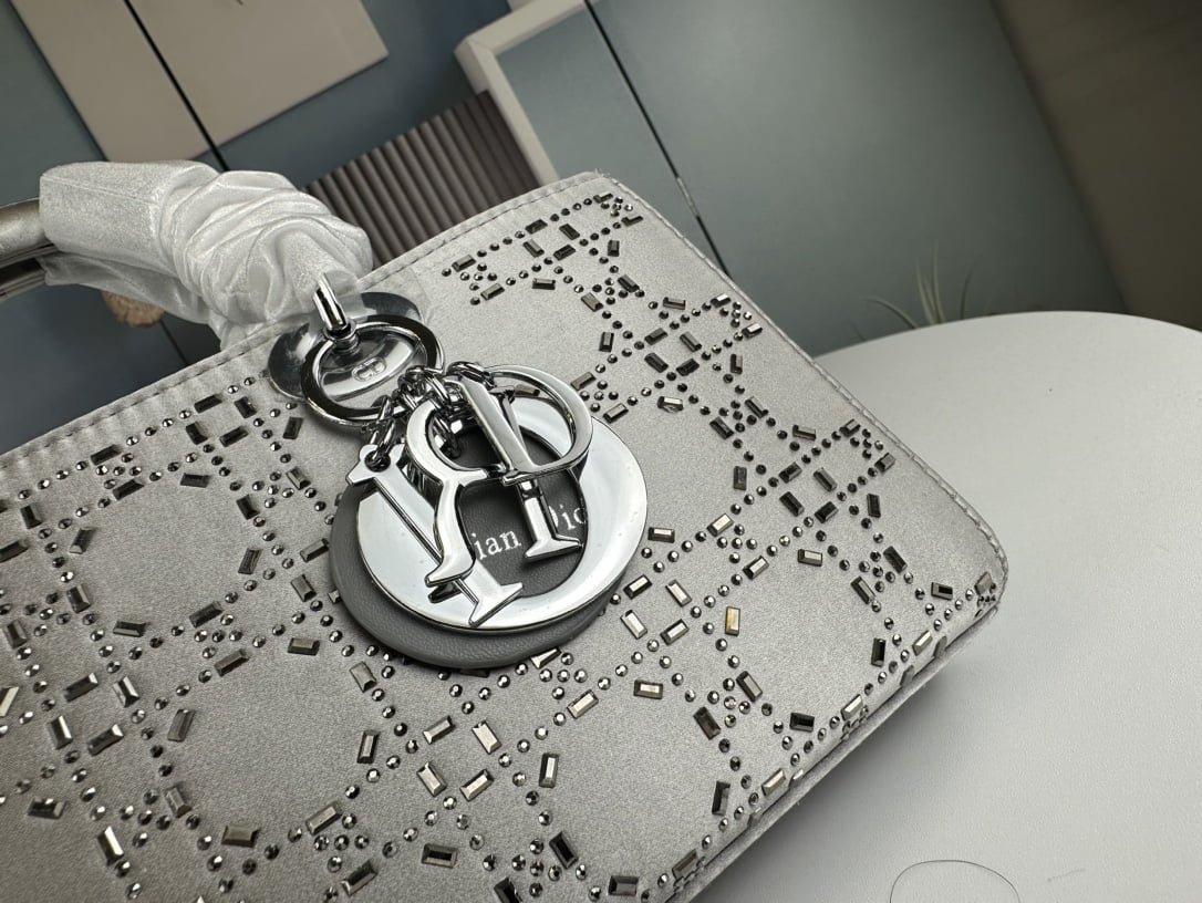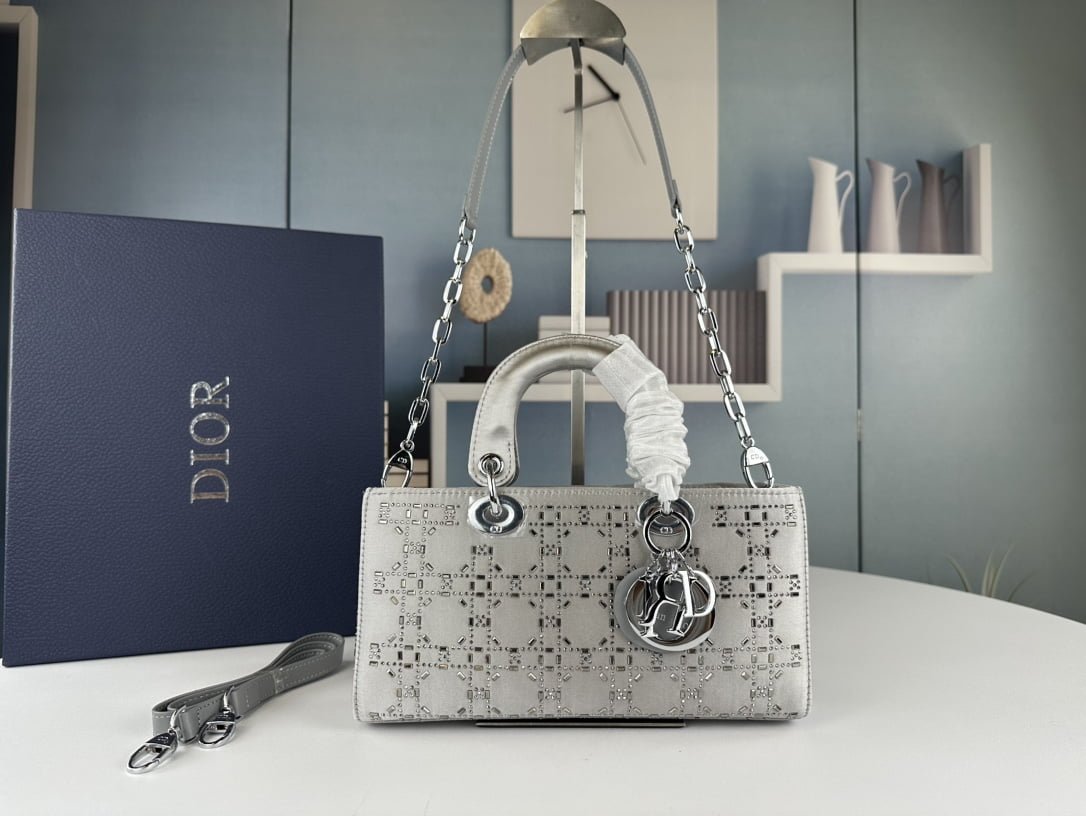 Dior satin diamond-encrusted Princess Diana bag grey 2320 size: 26*13*6cm