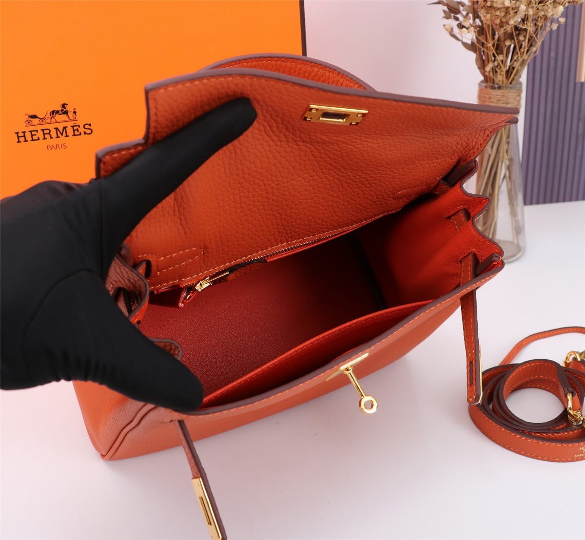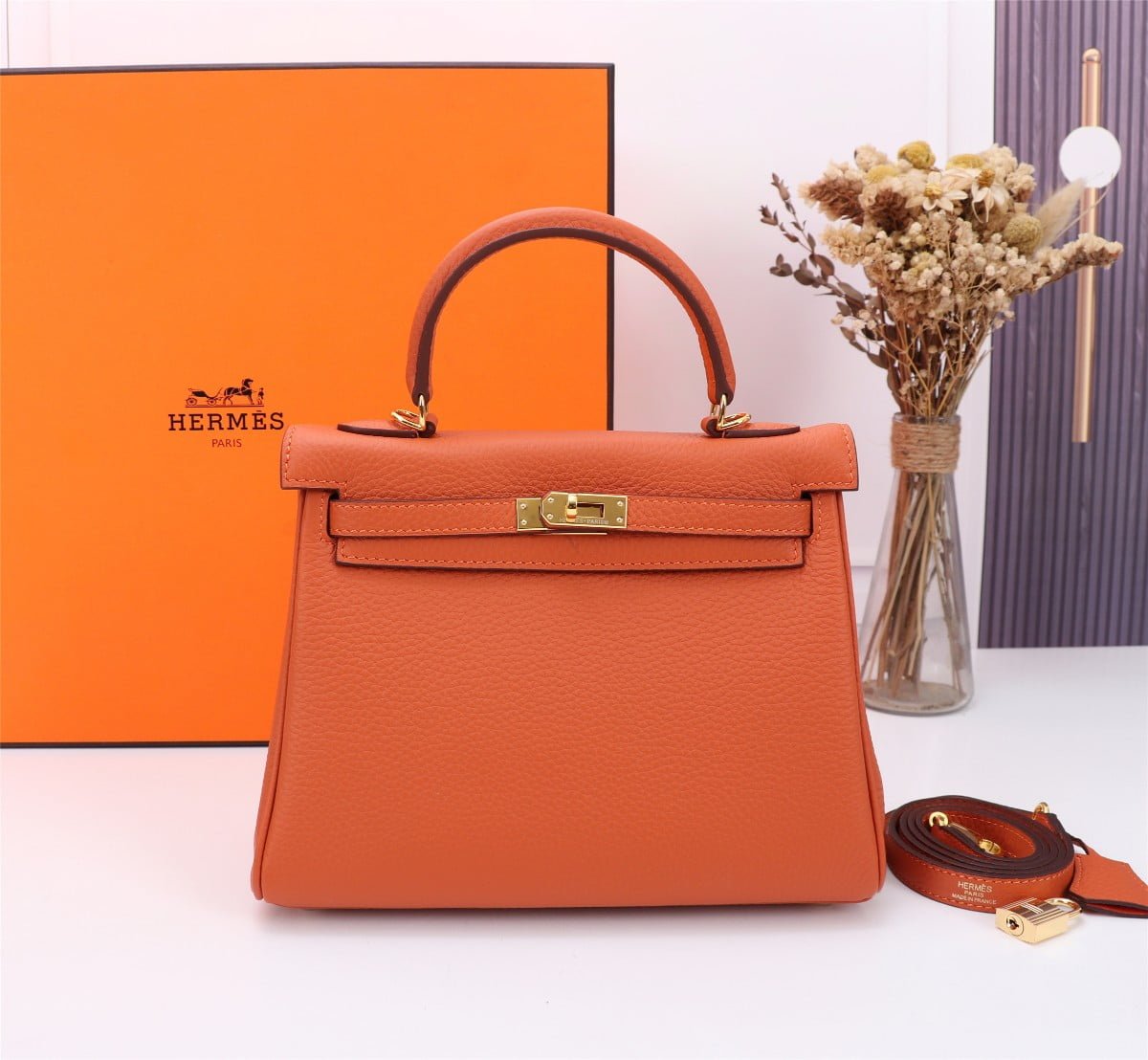Hermes Kelly Orange Pure leather fabric wear-resistant