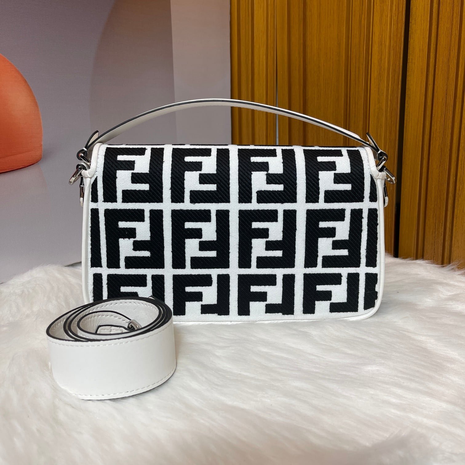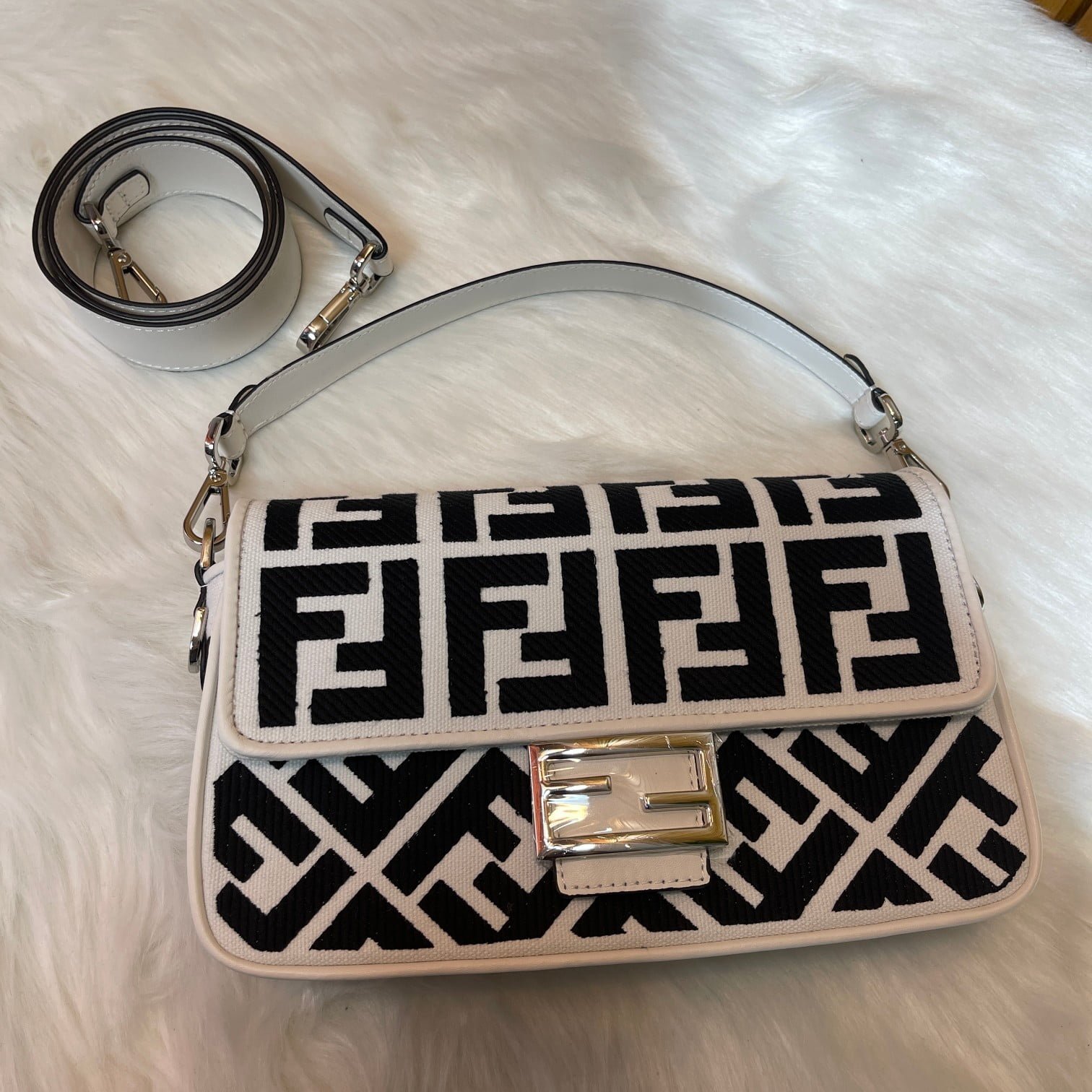 2023 Fendi’s latest baguette bag: very summery; ???? black F embroidery color. This black/white Fendi Baguette is sure to be a trendy item this summer! It looks great on the top; Attendance is also particularly high; It’s absolutely fine for a concave shape. Very lightweight. And its capacity is also very powerful; Easily meet your daily needs. With a short strap and a wide shoulder strap; Can be carried on one shoulder and crossbody. Very versatile. It’s easy to wear no matter what style you have. Carry it and you’ll be the brightest goddess in the crowd. Model F2029 Size 26-5-15CM