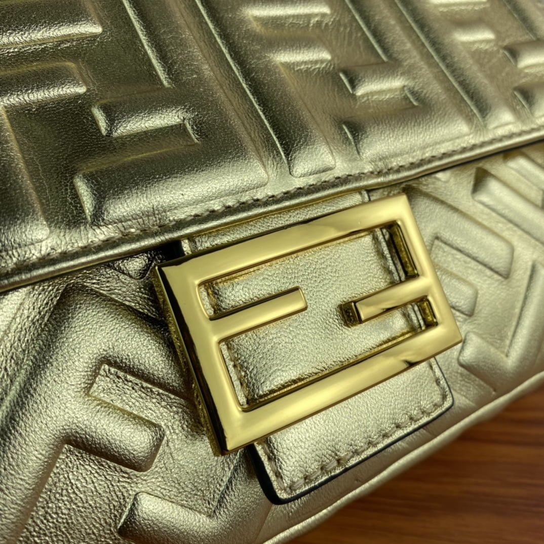 FENDI BAGUETTE Embossed design Gold Handbag F0191 Size: 26x5x15cm