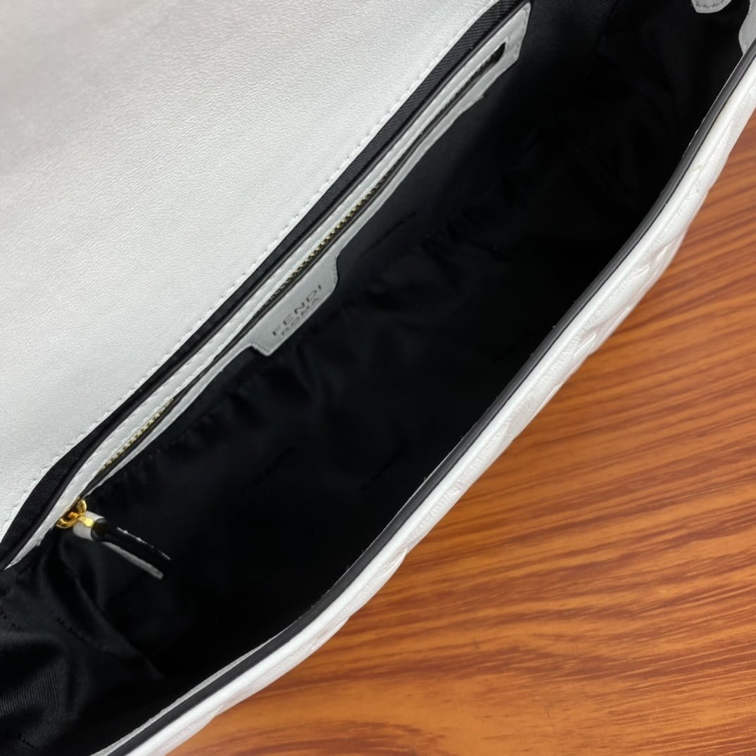 FENDI BAGUETTE Embossed design White Handbag F0191 Size: 26x5x15cm