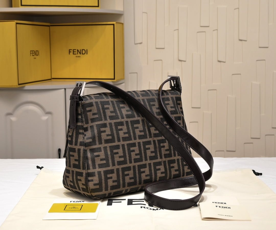 FENDI Vintage Underarm bag 7701 Waterproof cloth Brown Size:26*15*4cm/29*21*12cm