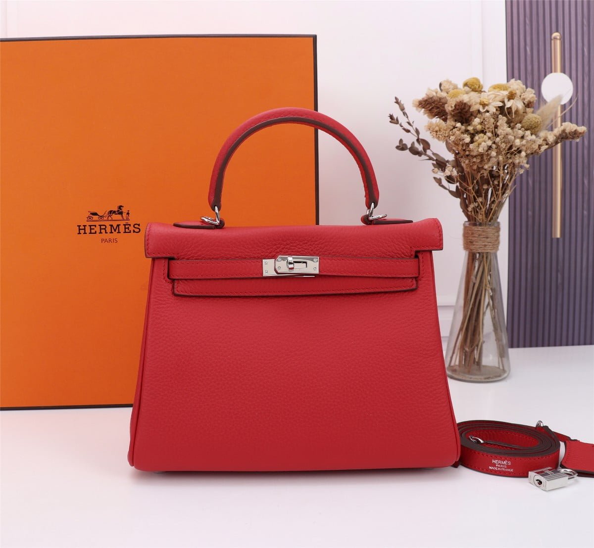 Hermes Kelly Red Pure leather fabric wear-resistant