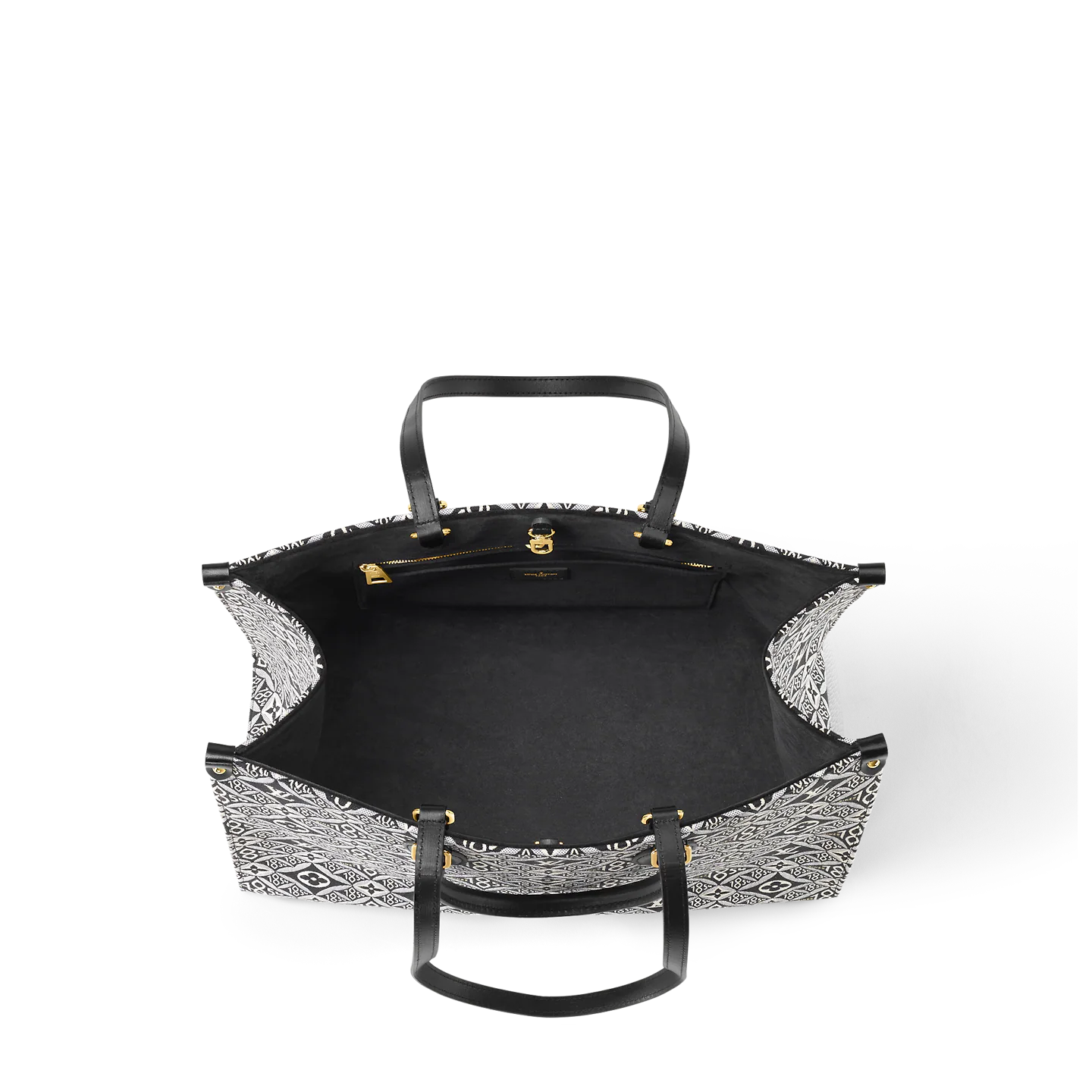 Nicolas Ghesqui??re brings his new Jacquard Since 1854 textile onto the OnTheGo GM tote. This woven textile is inspired by vintage wallpaper patterns and features Monogram Flowers and the number 1854. the year of the House’s founding. With two sets of handles. long and short. and a spacious interior. this is a versatile everyday bag.