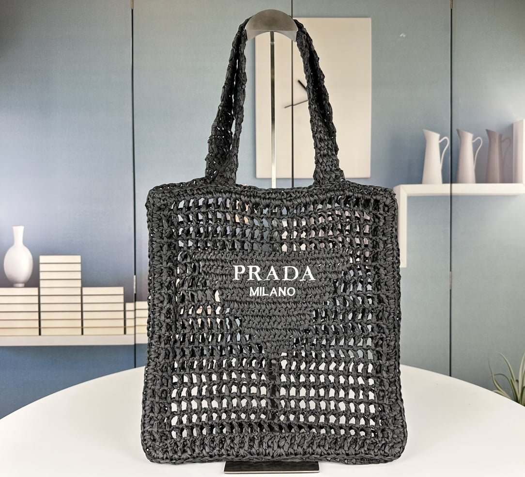 Raffia fiber Tote bag ???????????? Soft deconstructed Tote bag made of raffia fiber, light and natural material to express the summer mood of the iconic Prada triangle logo refresh, decorate the front of the bag, the center is decorated with embroidery engraved logo, reminiscent of the brand style, a must-have summer sunrise street, beautiful and lightweight, ???? Let the babies get their hands on ???????????? Size: Height 38x width 36x base 3. Model: 1BG393