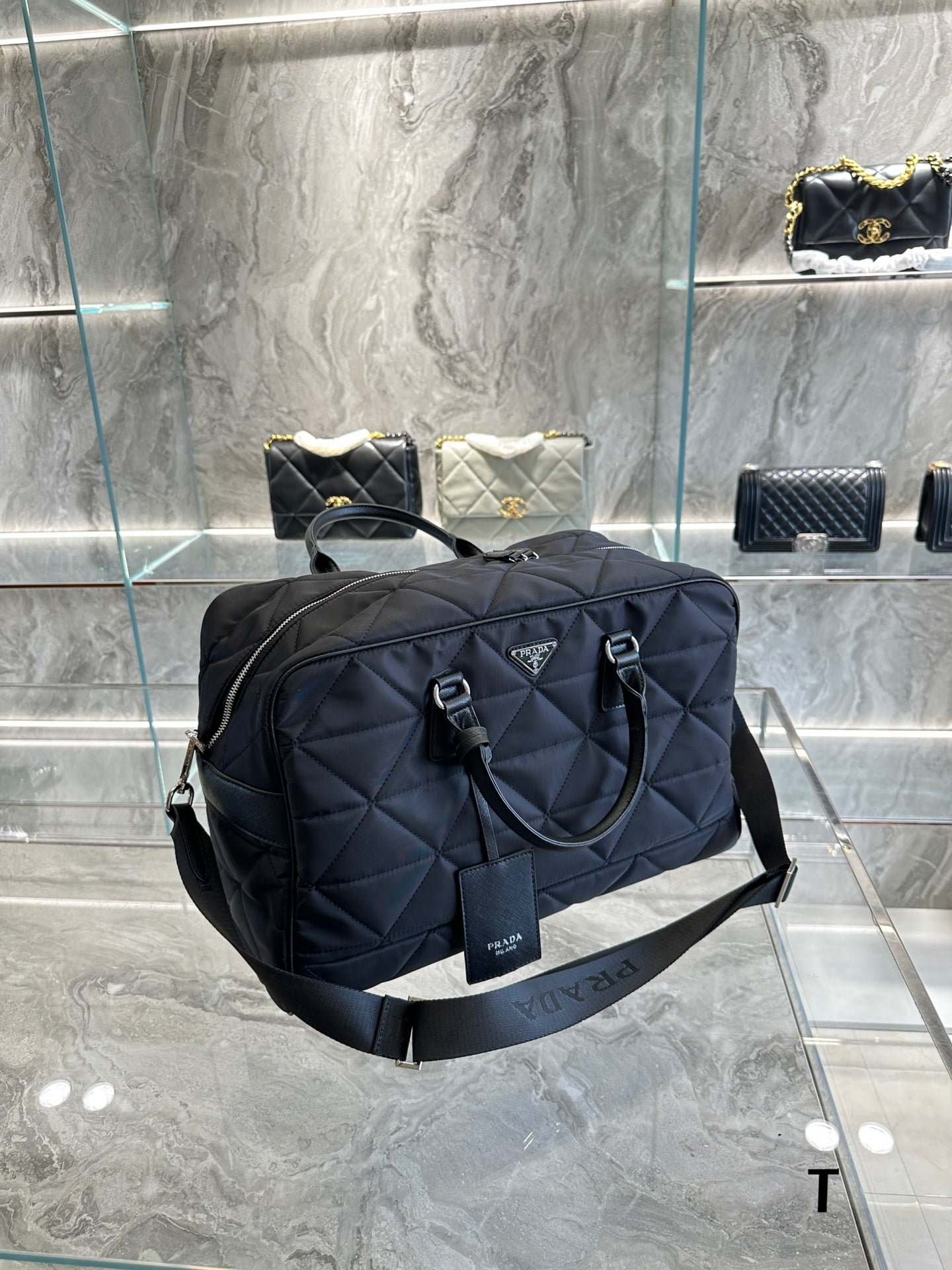 The latest model from Pra! Quilted RE-NYLON Travel Bag! Quilting elements inspired by the brand’s signature geometric shapes are spread out in this avant-garde, sporty Re-Nylon recycled nylon travel bag to interpret the chic design! Emblematic enamelled metal triangle logos adorn the front! Can be a crossbody bag travel bag handbag! Brand unique Italian imported parachute fabric with imported cowhide, advanced anti-splash fabric, active shoulder strap can be taken off, note that this shoulder strap can be adjusted, can be a shoulder can be crossbody, bag mouth with a lock head, quite safe! Really quite practical and high-end, rare good bag! Size: L 45 x H 30.5 x W 15# Men’s bag # Luxury bag