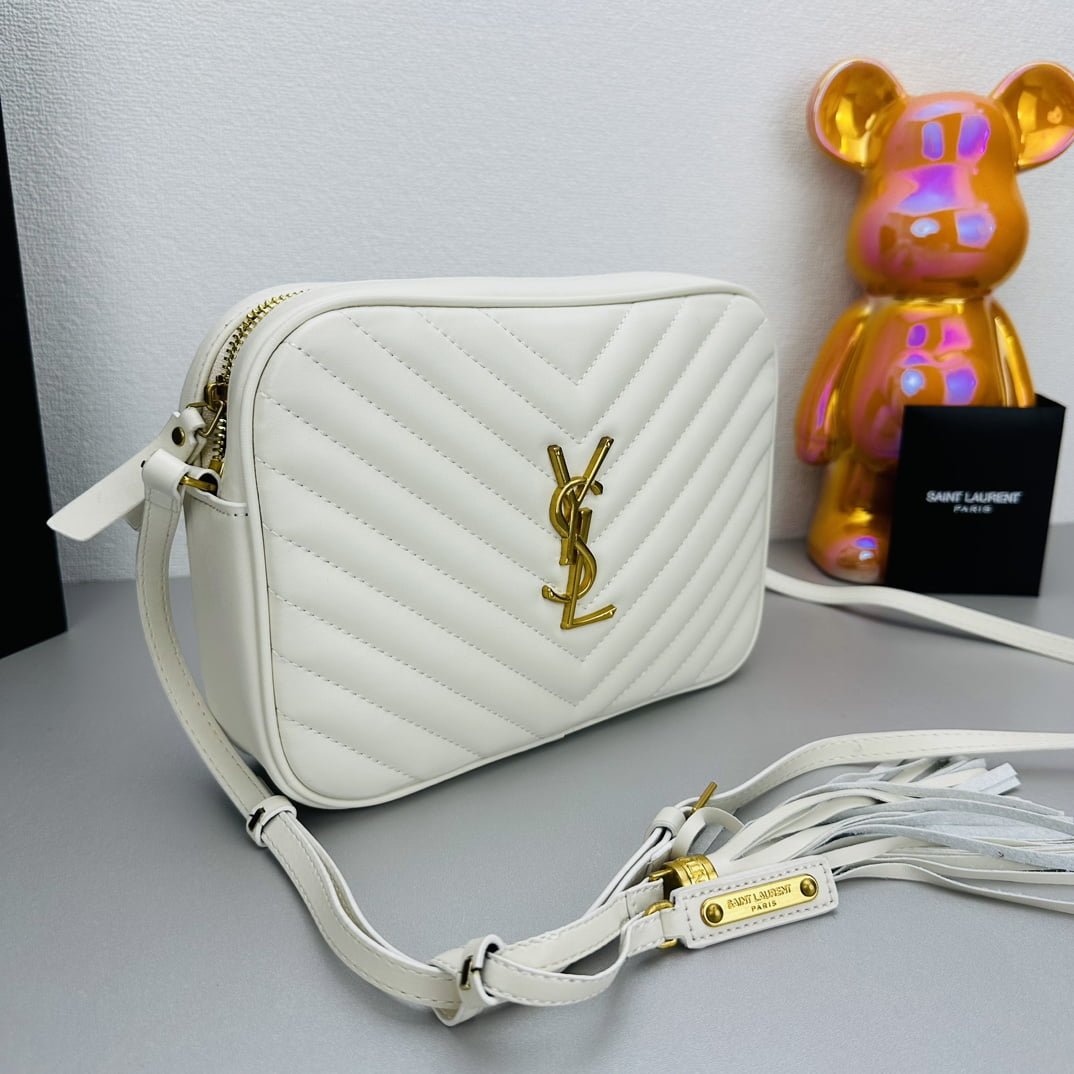 YSL MONOGRAM SAINT LAURENT LOU quilted leather camera bag white with gold hardware 520534 size: 23*16*6CM