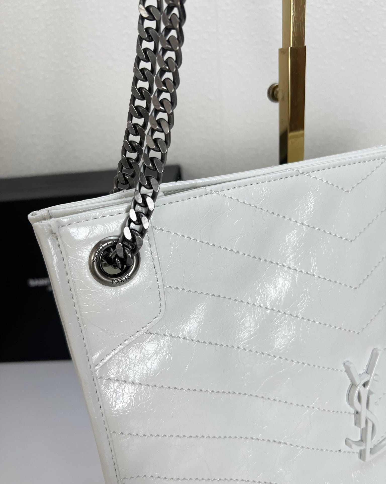YSL NIKI Wrinkled retro oil wax skin tote bag white
