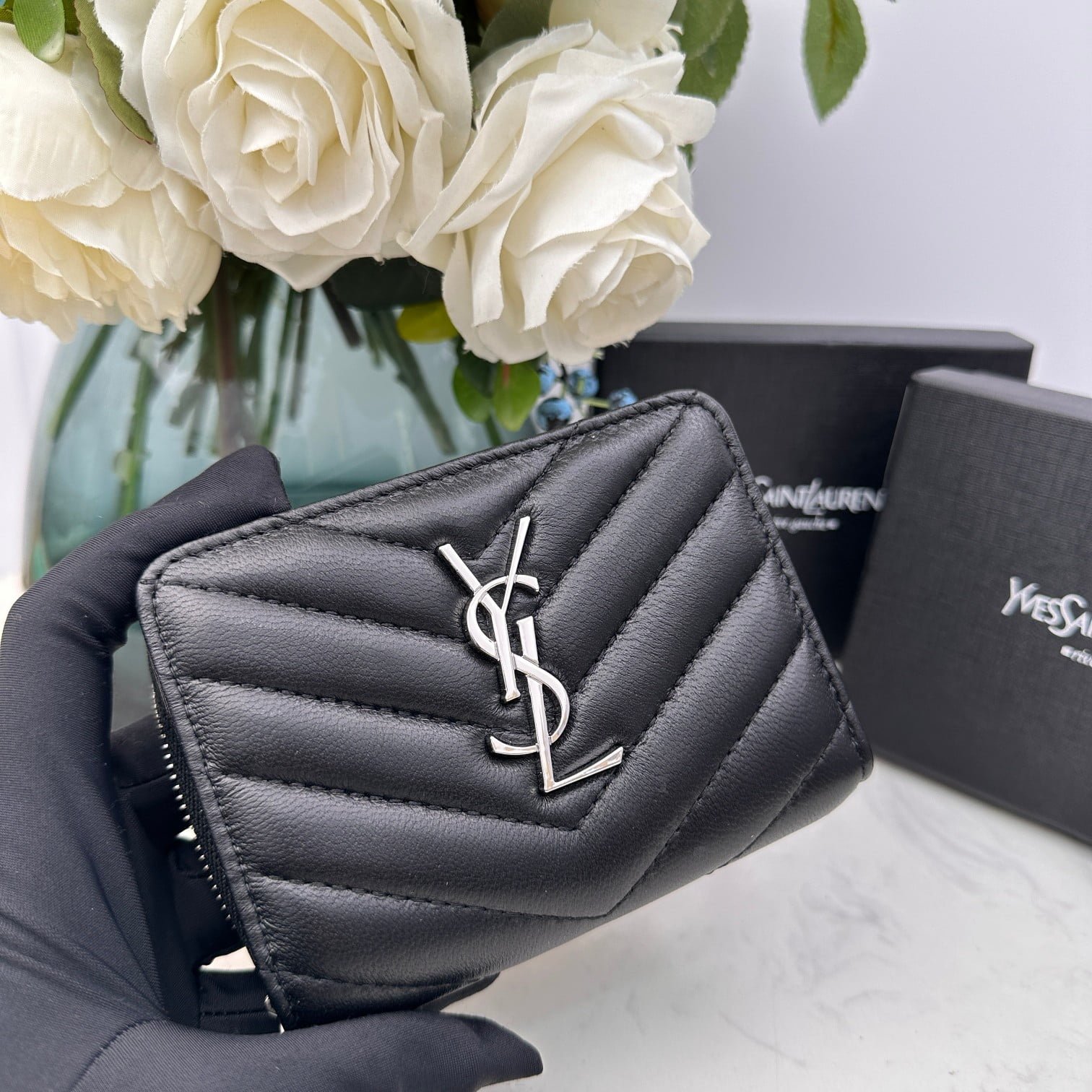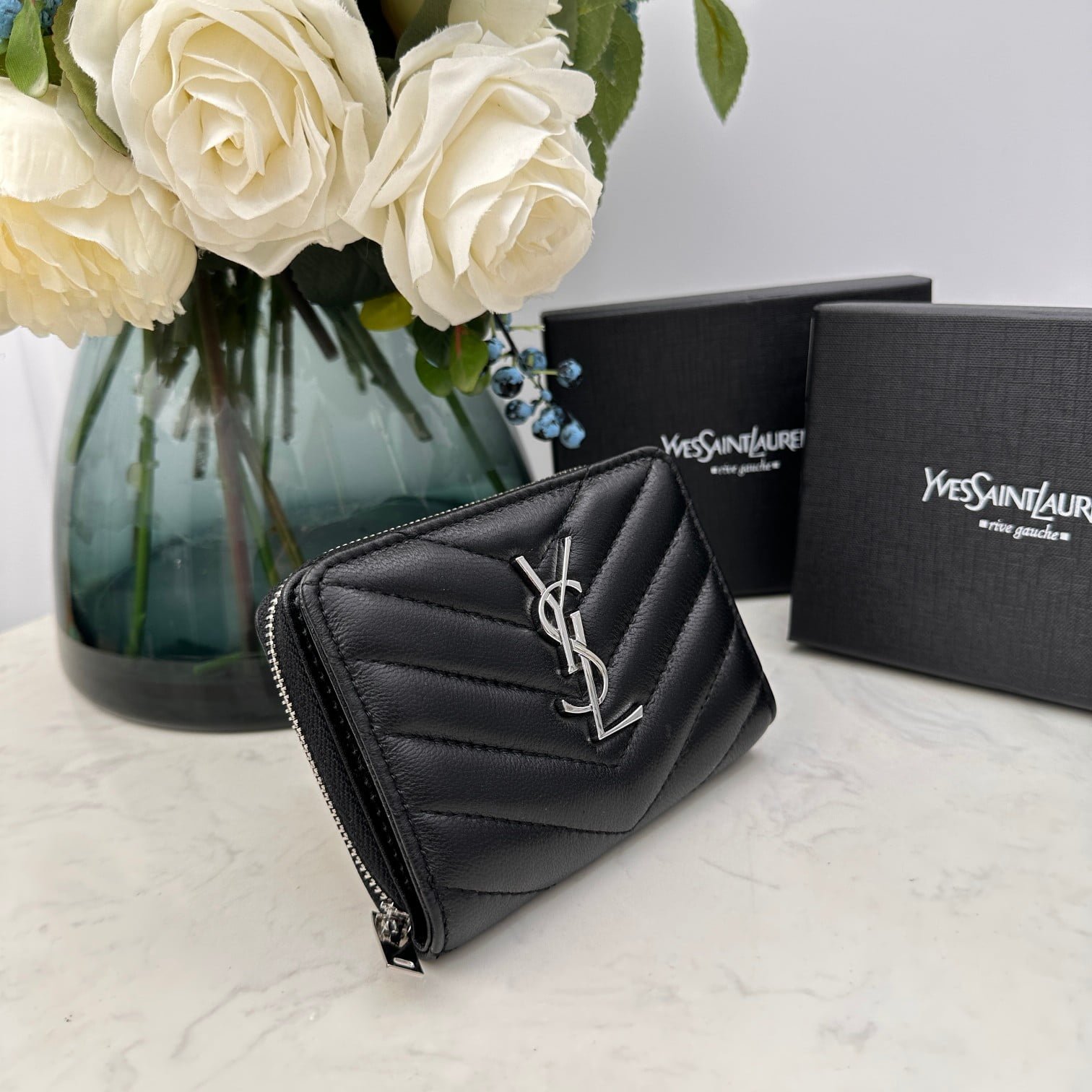 YSL SLP short round zipper money clip wallet