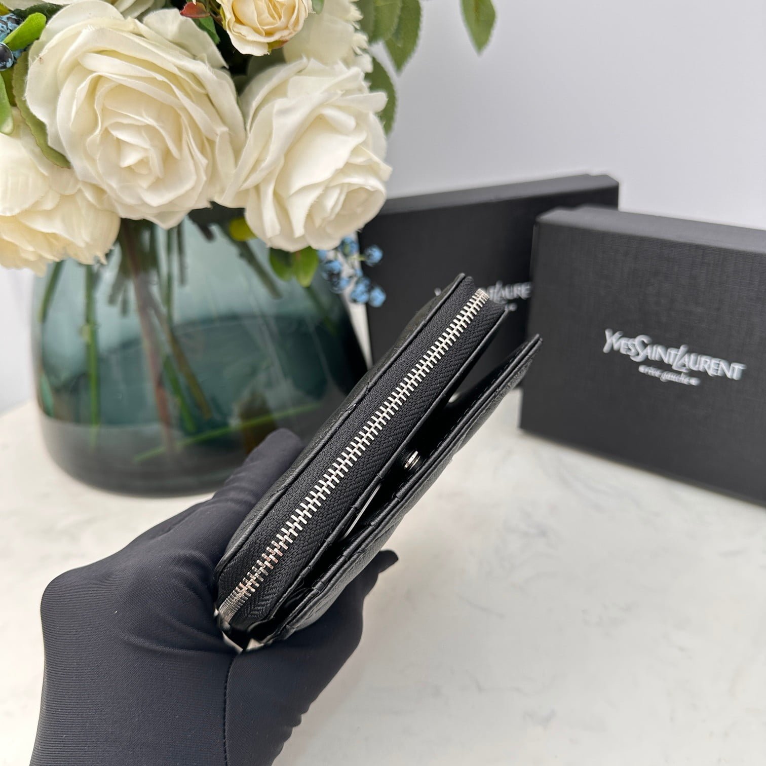 YSL Kat caviar Short round zip wallet 1890 black size: 12*10*3CM 原价为:$358.00。当前价格为:$128.00。