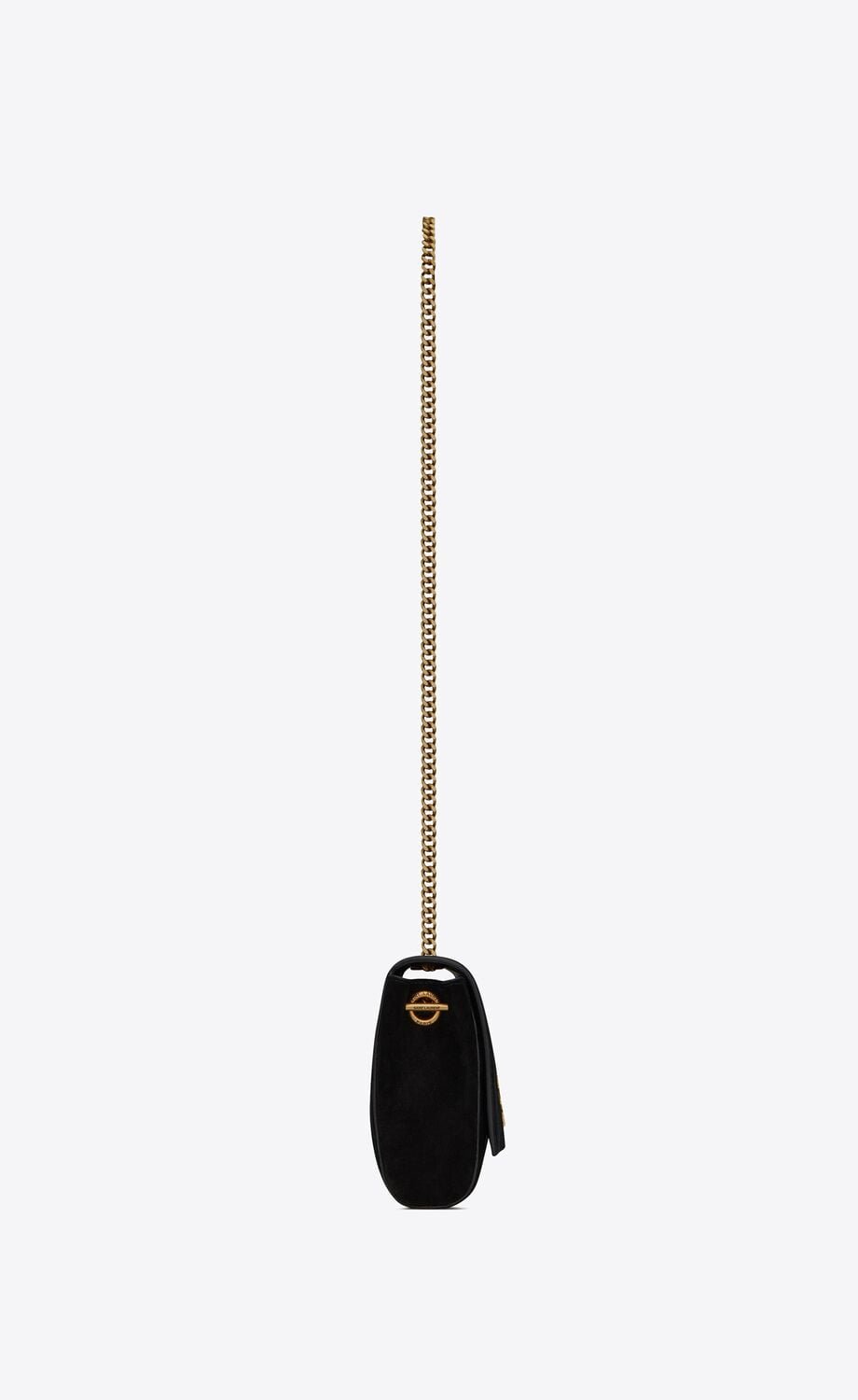 SUPPLE REVERSIBLE SUEDE BAG. FEATURING METAL CASSANDRE AND SLIDING CHAIN.